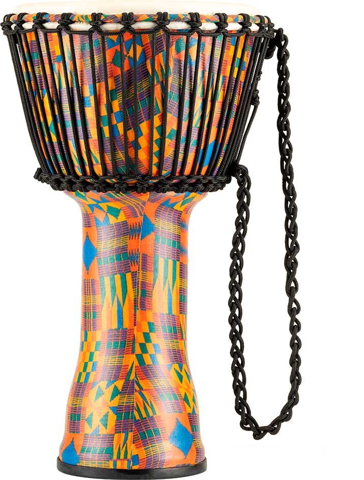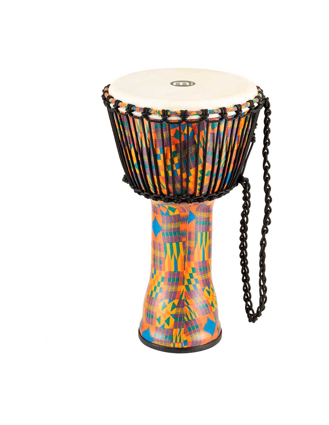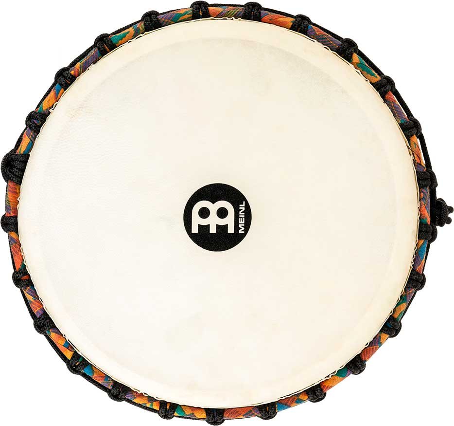 'Djembe da 10''''. I Djembes della serie Travel di Meinl trovano la loro vocazione ''''sulla strada''''. L'alloggiamento del Travel Djembe è in plastica, rendendo lo strumento estremamente leggero e robusto. L'uso della plastica per nel Travel Djembe ha dato agli sviluppatori del prodotto Meinl l'opportunità di risparmiare il 20% di peso in più rispetto al modello in fibra di vetro. Inoltre, questo materiale leggero permette anche caratteristiche di vibrazione molto facili e presenta una direzione molto sensibile e diretta con bassi pronunciati e alti assertivi.