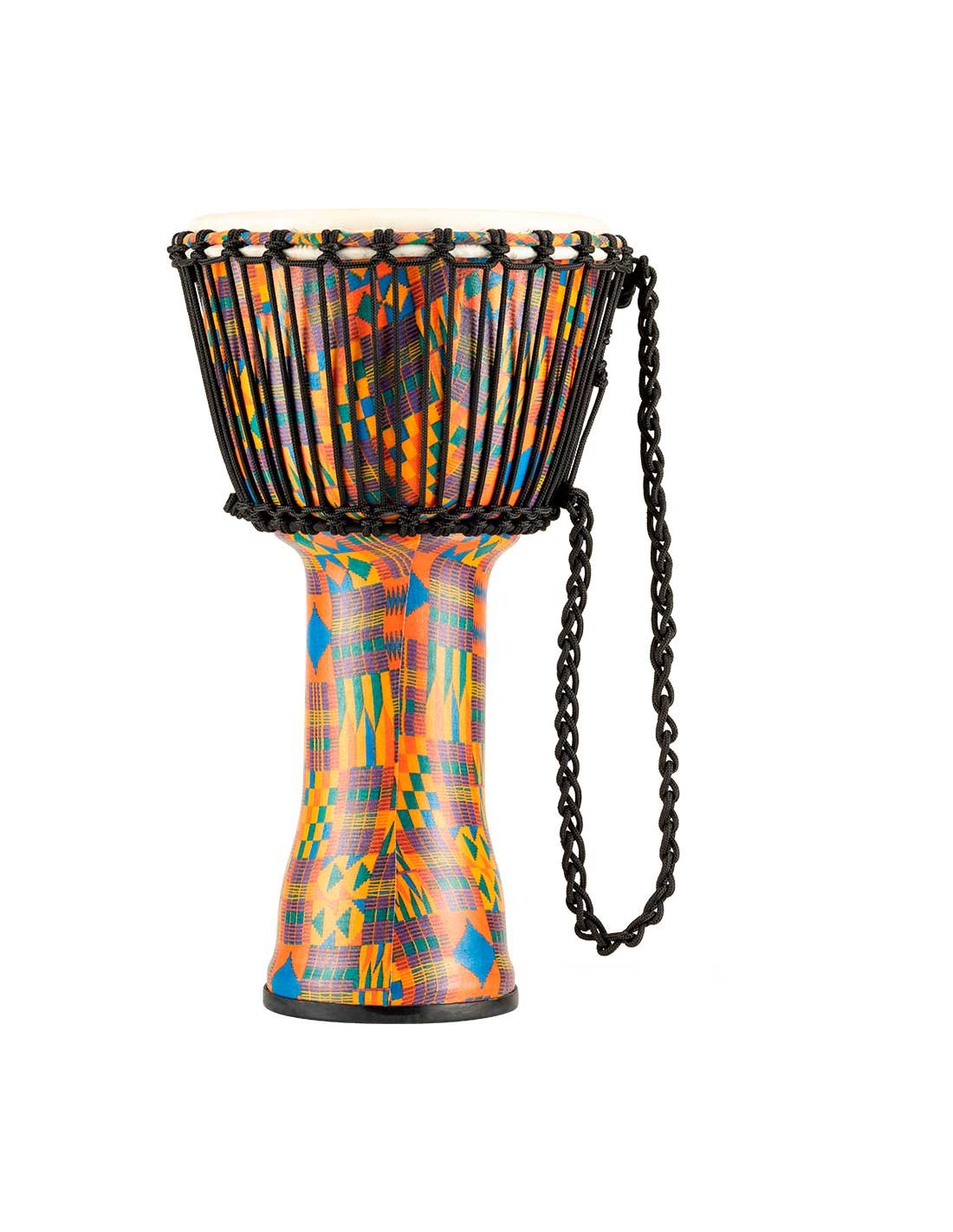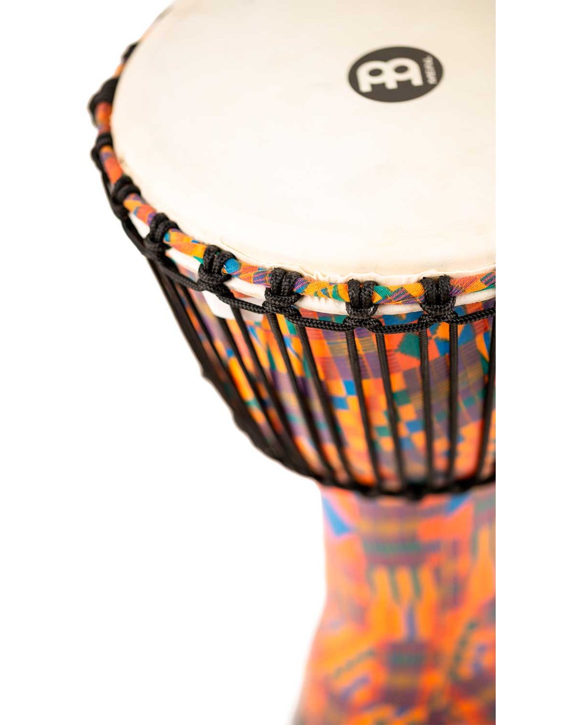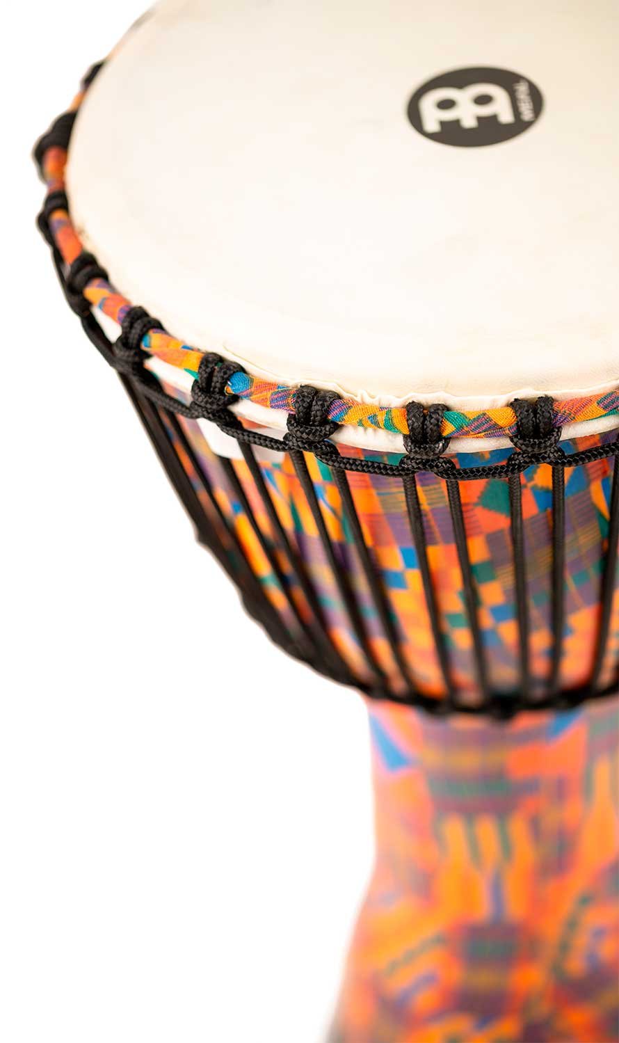 'Djembe da 10''''. I Djembes della serie Travel di Meinl trovano la loro vocazione ''''sulla strada''''. L'alloggiamento del Travel Djembe è in plastica, rendendo lo strumento estremamente leggero e robusto. L'uso della plastica per nel Travel Djembe ha dato agli sviluppatori del prodotto Meinl l'opportunità di risparmiare il 20% di peso in più rispetto al modello in fibra di vetro. Inoltre, questo materiale leggero permette anche caratteristiche di vibrazione molto facili e presenta una direzione molto sensibile e diretta con bassi pronunciati e alti assertivi.