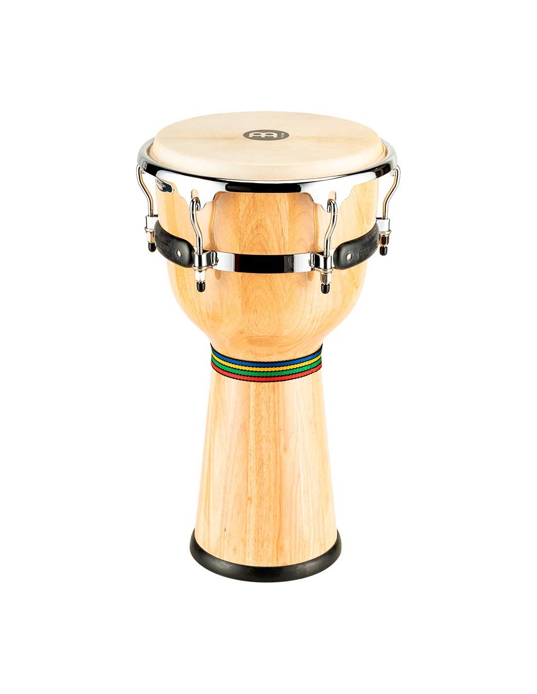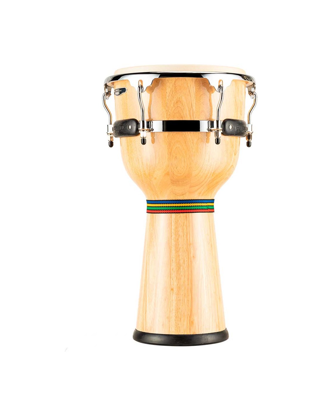'Djembe di legno 12''. Sistema di accordatura flottante brevettato. Cerchi SSR arrotondati da 3 mm. Viti di regolazione da 8 mm. Include chiave di accordo a forma di ''L'' e olio.