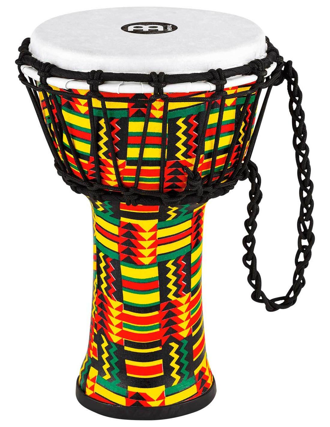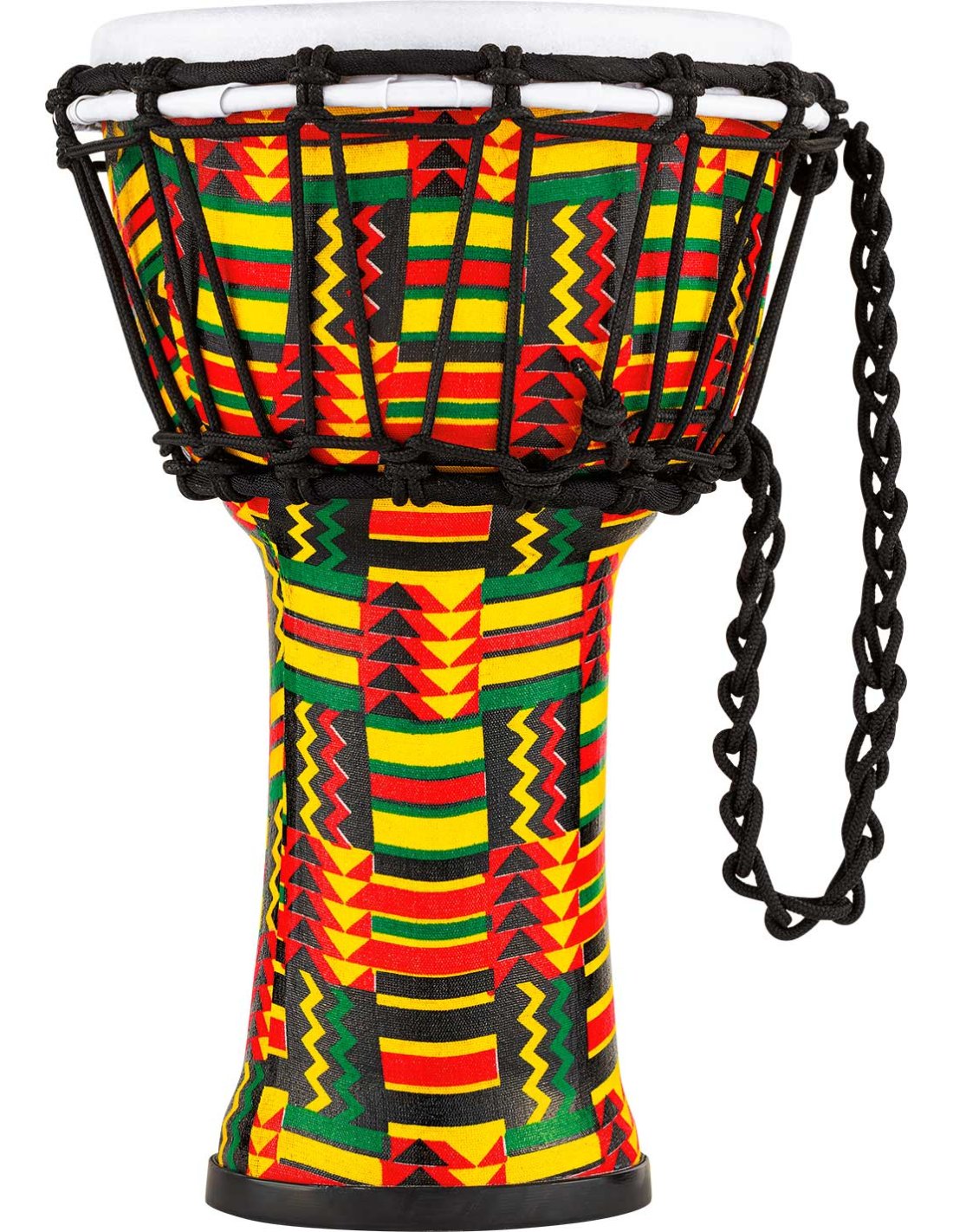 '''Mini Djembe JRD-Si. Il Meinl Junior Djembe di soli 7 è lo strumento perfetto da portare ovunque. Questo Djembe compatto offre un grande suono e un tono eccellente, ideale per riunioni con gli amici o sessioni di insegnamento del ritmo. Il suo guscio e la sua testa, sintetici e leggeri al 100%, lo rendono perfetto per suonare all'aperto. Le sue 14 corde pretensionate mantengono meglio l'accordatura.