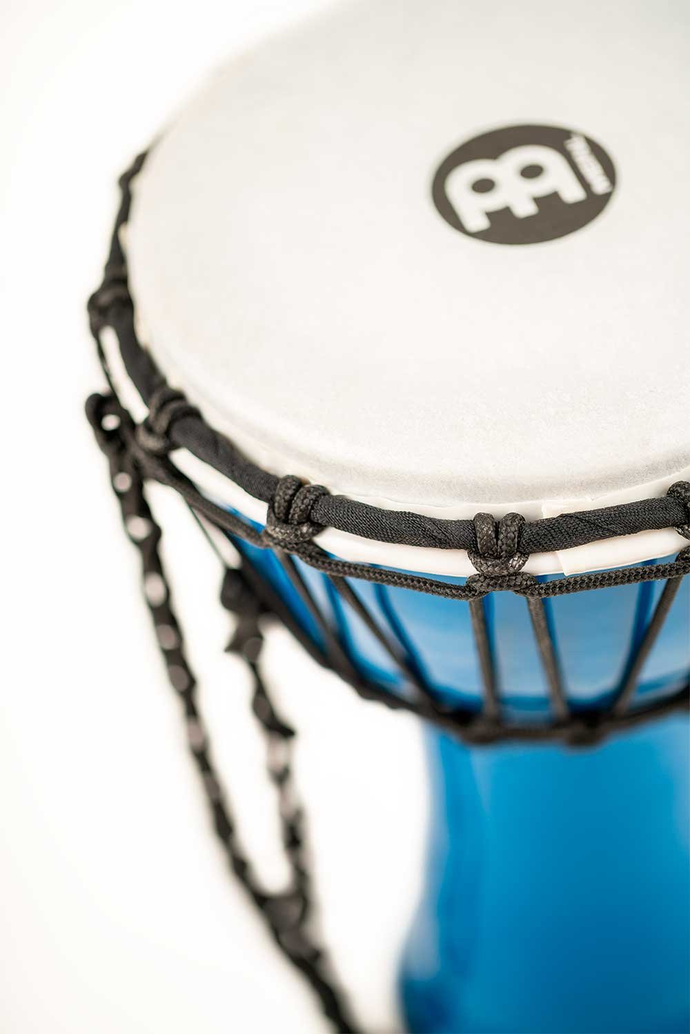 'Mini Djembe JRD-B. Il Meinl Junior Djembe di soli 7'' è lo strumento perfetto da portare ovunque. Questo Djembe compatto offre un grande suono e un tono eccellente, ideale per riunioni con gli amici o sessioni di insegnamento del ritmo. Il suo guscio e la patch sintetici e leggeri al 100% lo rendono perfetto per suonare all'aperto. Le sue 14 corde pretensionate mantengono meglio l'accordatura.