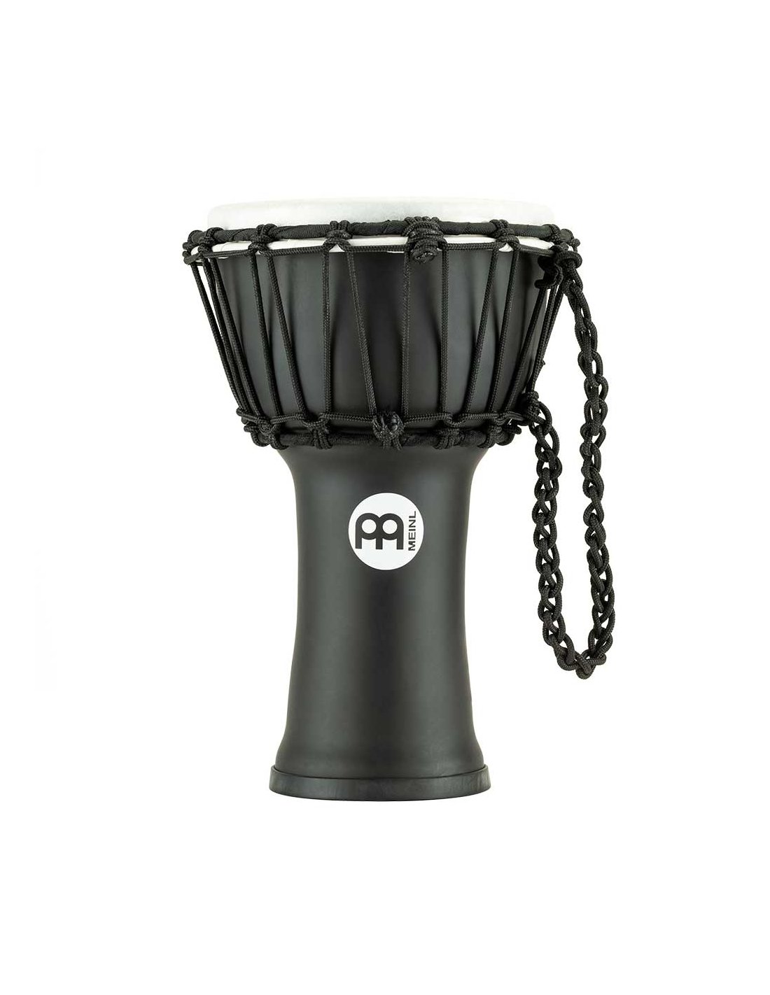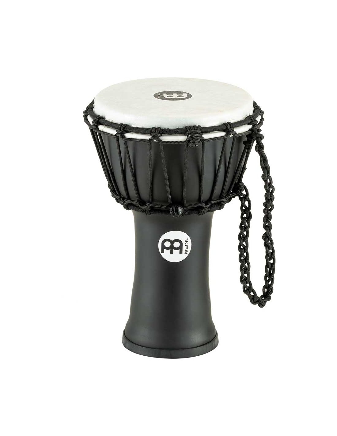'Mini Djembe JRD-BK. Il Meinl Junior Djembe di soli 7'' è lo strumento perfetto da portare ovunque. Questo Djembe compatto offre un grande suono e un tono eccellente, ideale per riunioni con gli amici o sessioni di insegnamento del ritmo. Il suo guscio e la patch sintetici e leggeri al 100% lo rendono perfetto per suonare all'aperto. Le sue 14 corde pretensionate mantengono meglio l'accordatura.