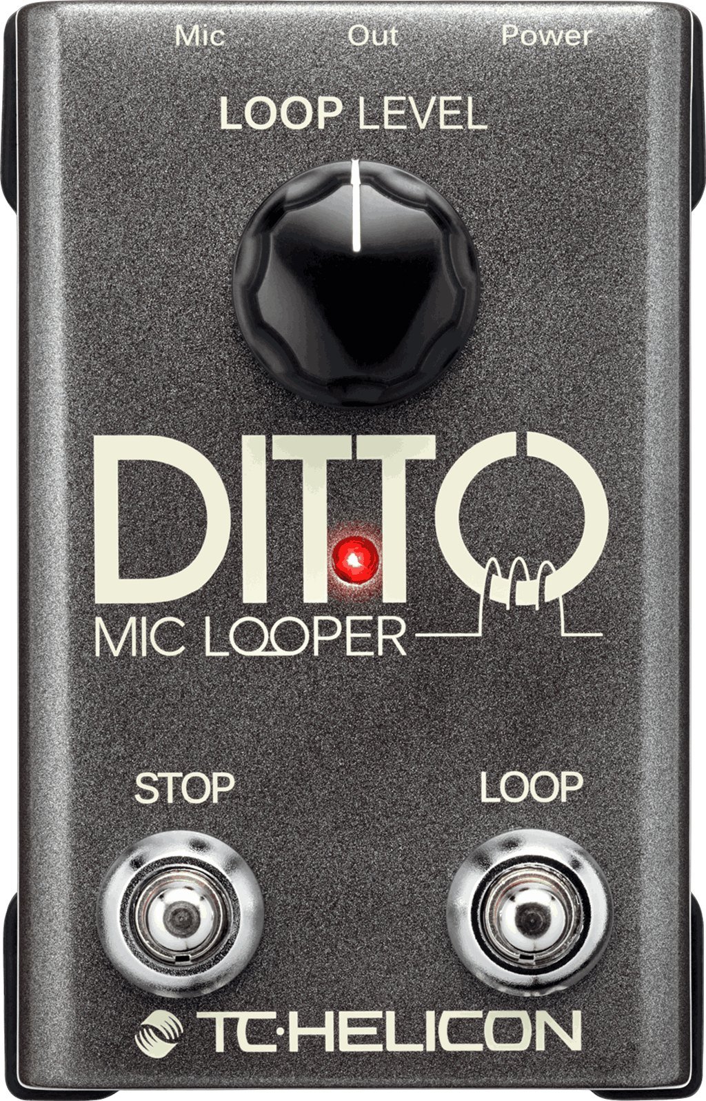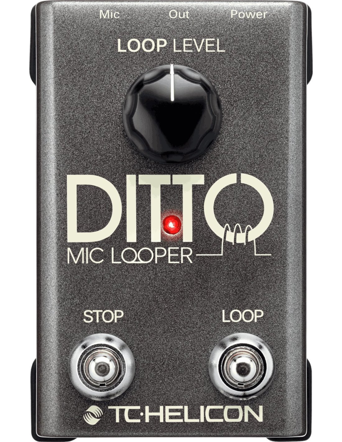 TC Helicon Ditto Mic Looper è un pedale effetto looper per voce o strumenti microfonati. E' dotato di ingressi e uscite XLR bilanciate, alimentazione phantom (24V), connessione USB per aggiornamenti firmware, Mic Control per looping remoto utilizzando l'interruttore sul microfono opzionale TC-Helicon MP-75. Può registrare fino a 5 minuti di audio con sovraincisioni illimitate e regolazione del gain automatica.
