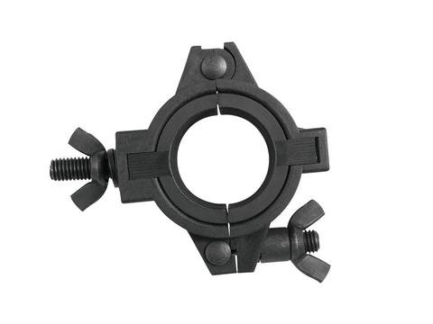 EUROLITE DEC-38D DUAL COUPIER R38. Gancio in plastica per attacco di effetti luce quali scanner, strobo, macchine del fumo, fari PAR su americane, tralicci e treppiedi da palco con diametro massimo di 38mm. Portata massima 50 kg in orizzontale, 25 kg in verticale.
