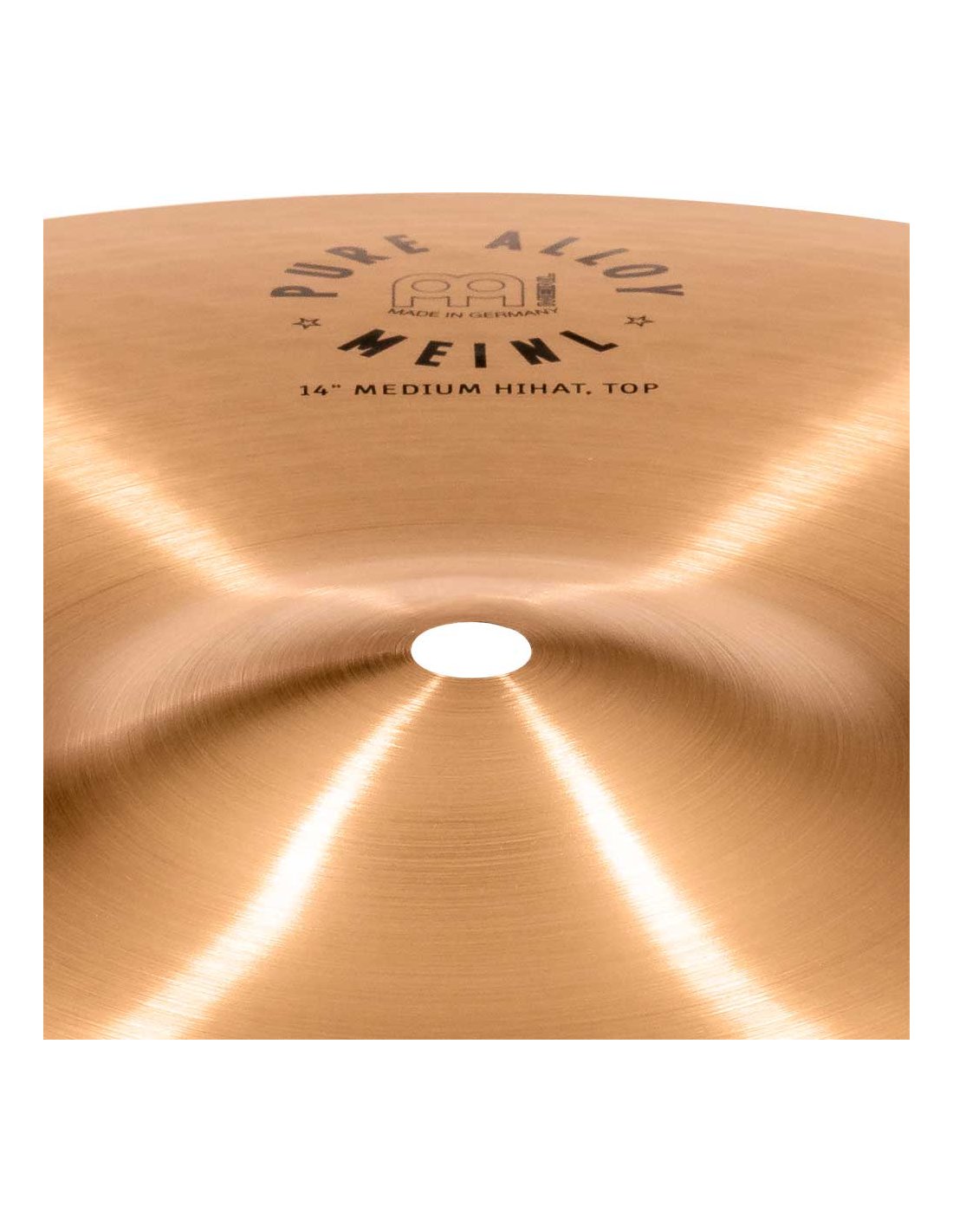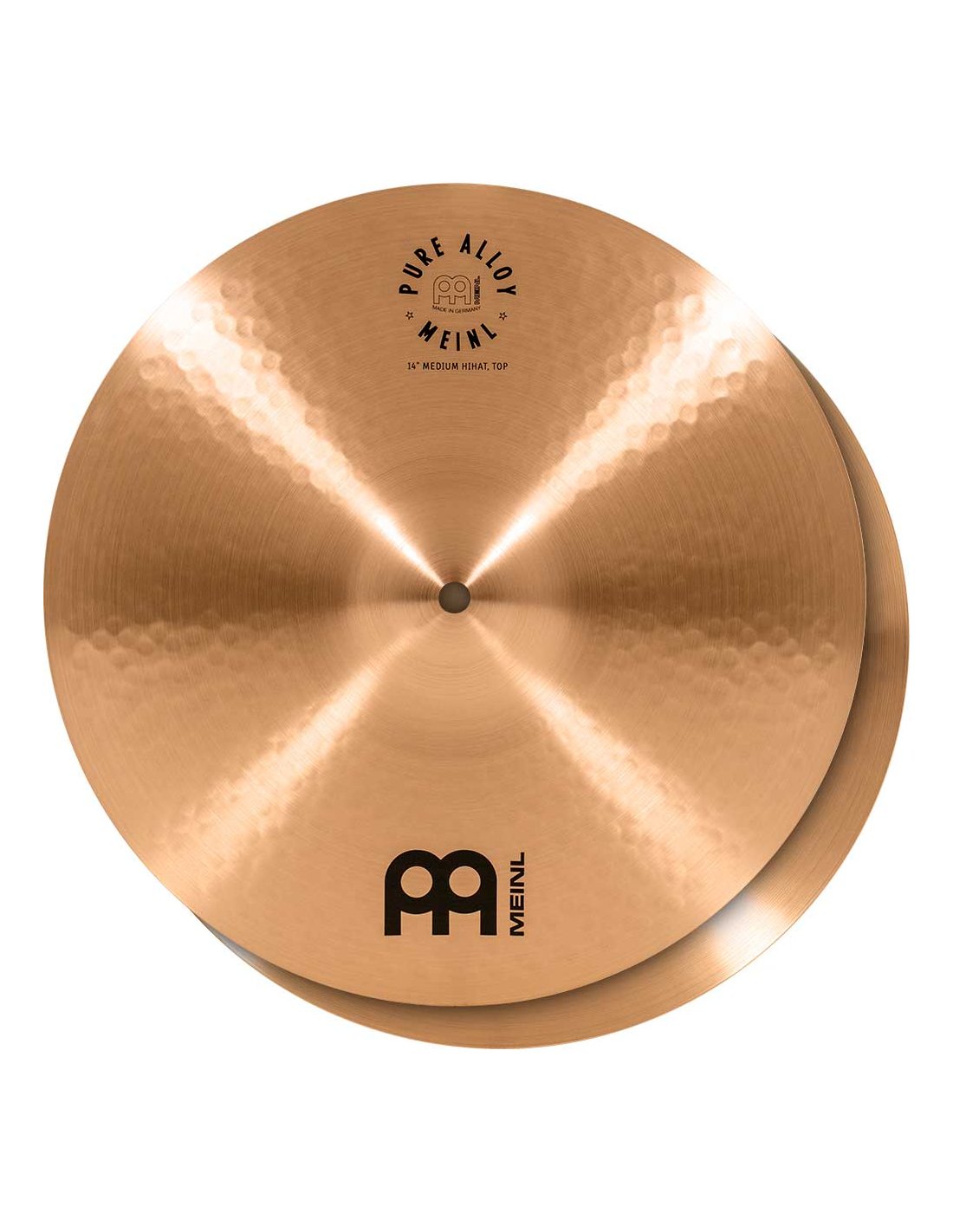 'Hi-hat 14'' Medio, Serie Pure Alloy. I piatti della serie Pure Alloy di Meinl combinano le caratteristiche dei classici piatti europei con l'articolazione di un piatto moderno. Esplosivo, espressivo e veramente articolato. Queste caratteristiche li rendono perfetti per molti stili musicali come il pop, il rock, la fusion, la musica etnica e tutto ciò che sta in mezzo.