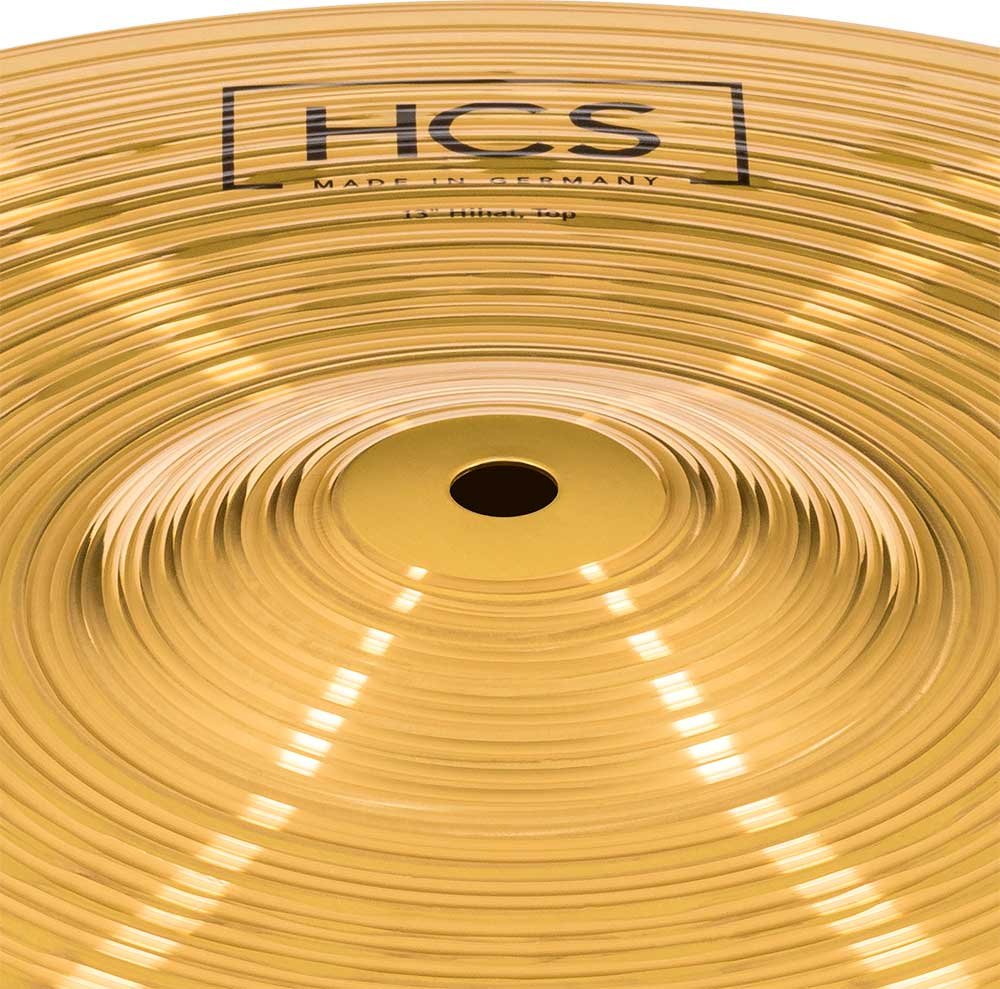 'Hi-hat 13'', Serie HCS. La serie di piatti per principianti MEINL offre una qualità eccellente, un'ottica Professionale e buone qualità di suono ad un buon prezzo. Tutti i piatti HCS Cymbals sono rifiniti con lega di ottone a campana MS63 e sono perfettamente calibrati.