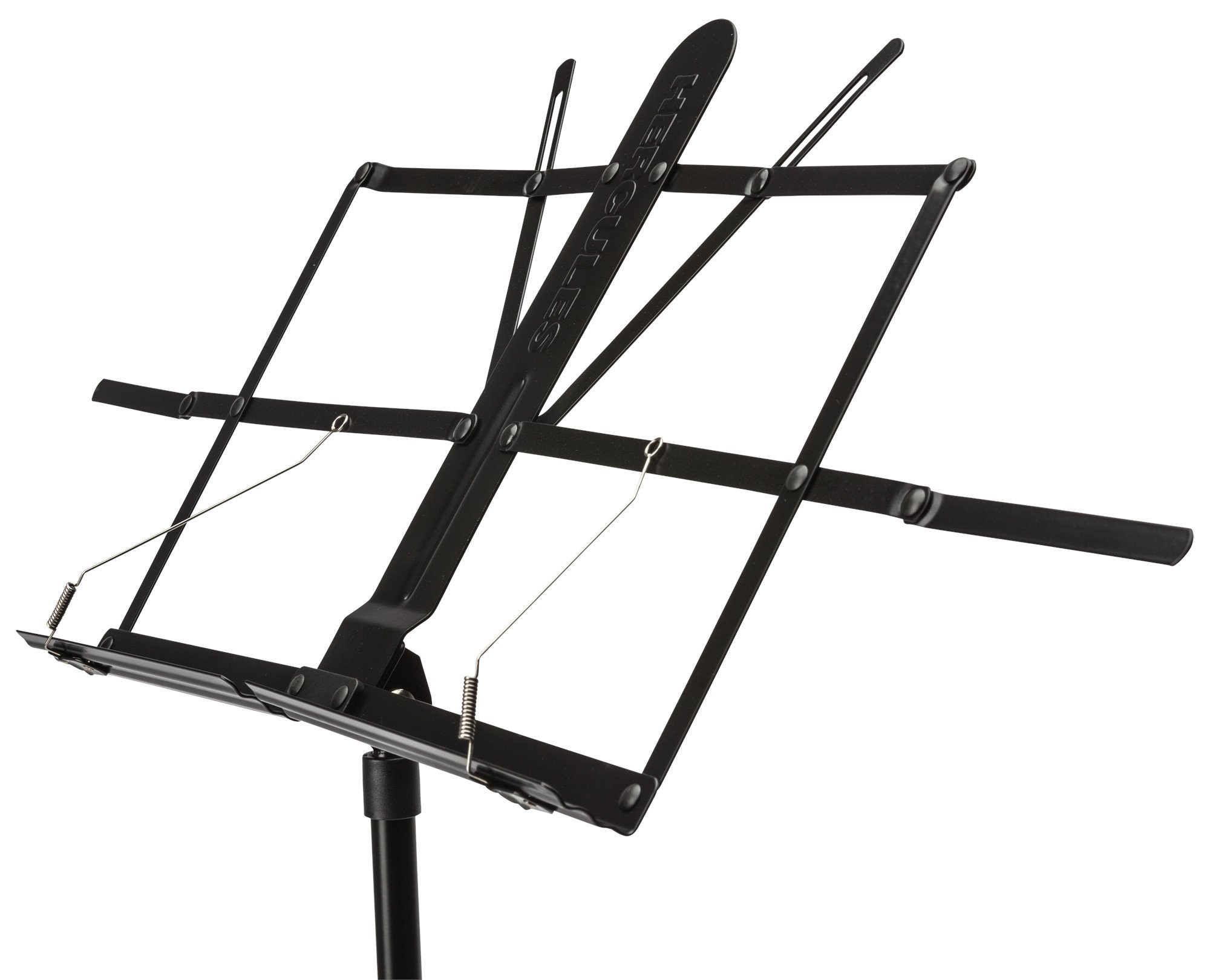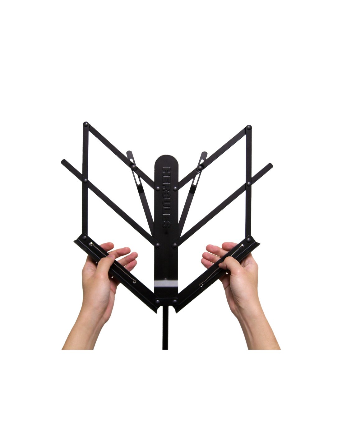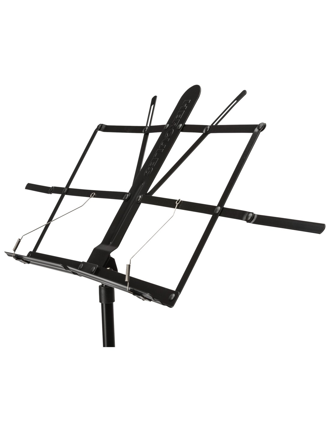 Leggio Hercules BS100. L’Hercules BS100 è un leggio in metallo pieghevole con finitura nera e altezza regolabile.