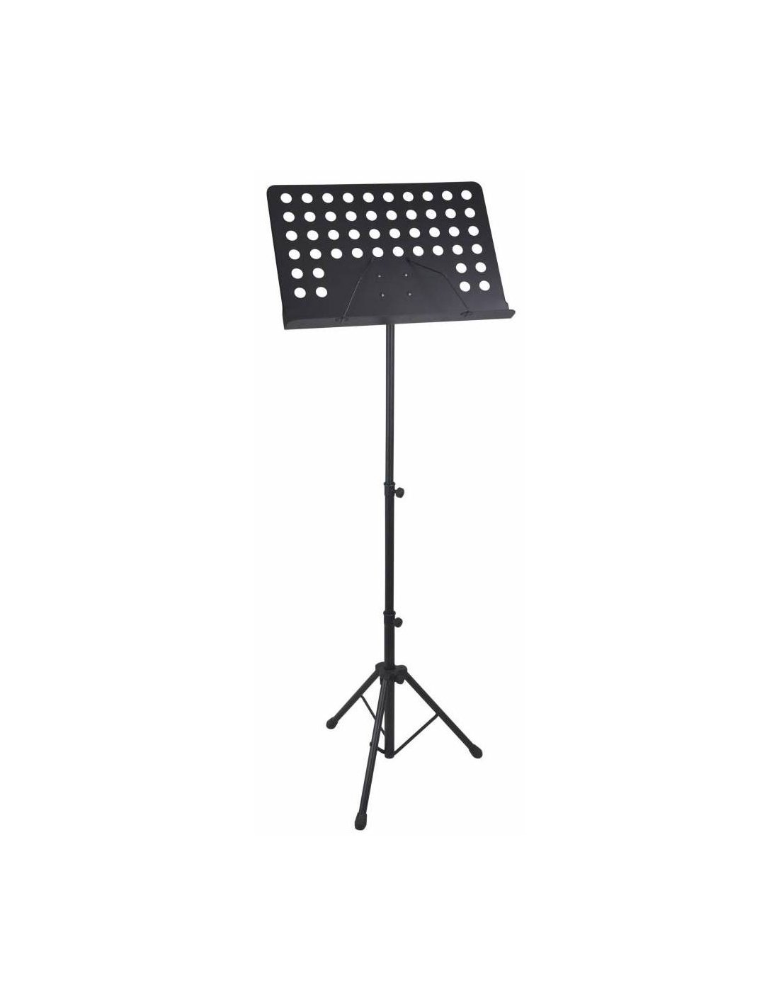 PROEL RSM700 è un leggio professionale con struttura tubolare in acciaio a 3 sezioni, altezza regolabile, piastra d'appoggio in acciaio forato e 3 gambe richiudibili con piedini in gomma. Include borsa per il trasporto.