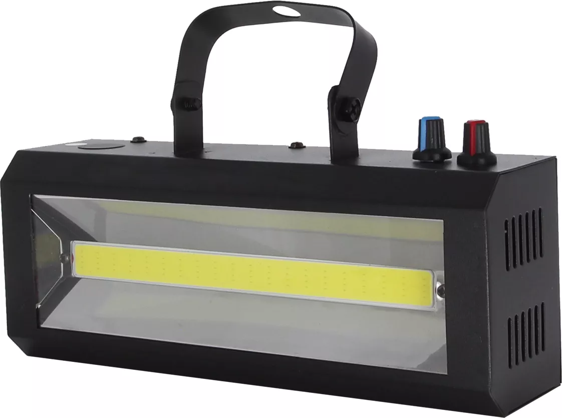 SOGETRONIC STROBE LED COB 80. Effetto strobo con 4 Led COB bianchi da 20W ciascuno, funzionamento Automatico o Sound, effetto strobo regolabile in velocità ed intensità grazie alle manopole di regolazione. Include staffa di sospensione regolabile.