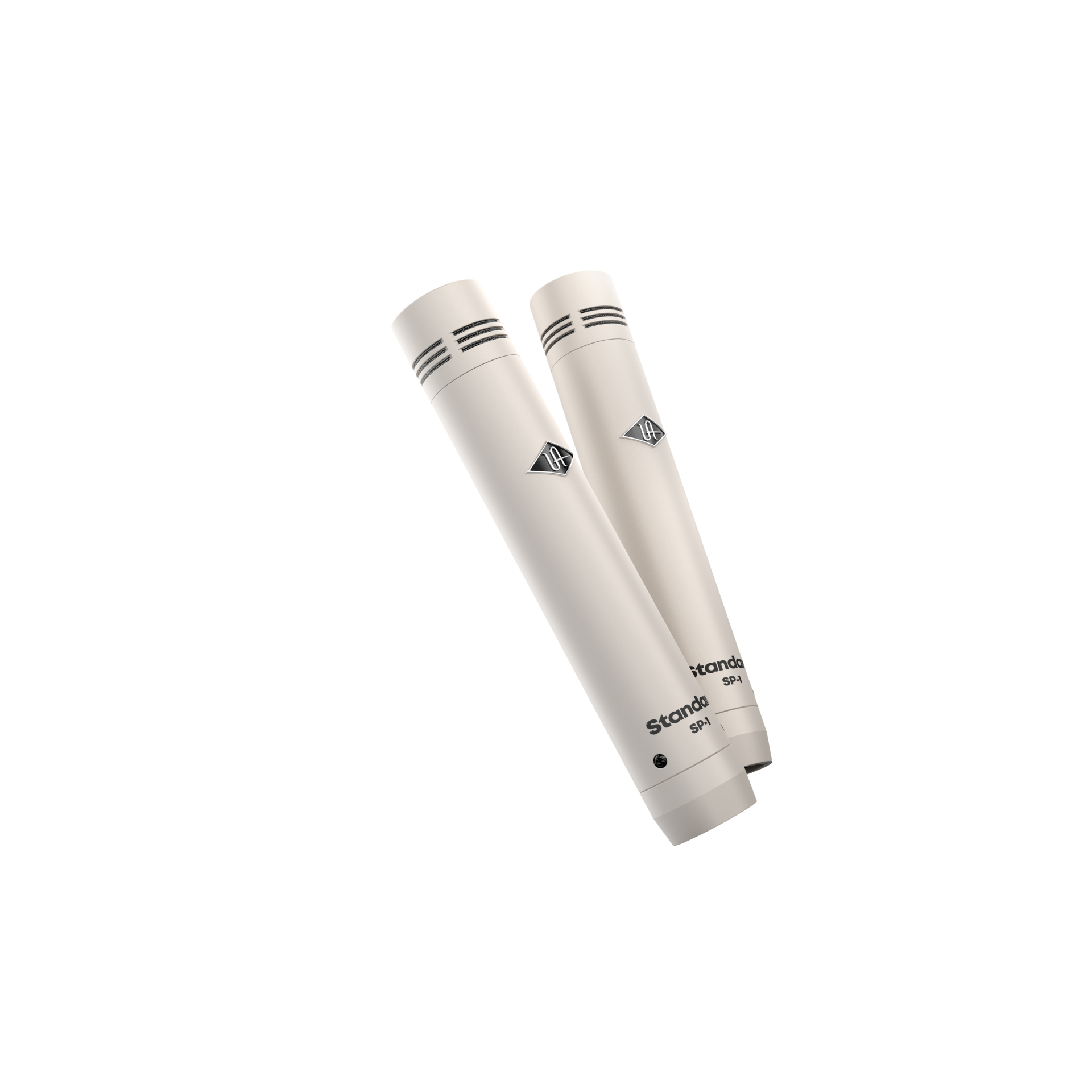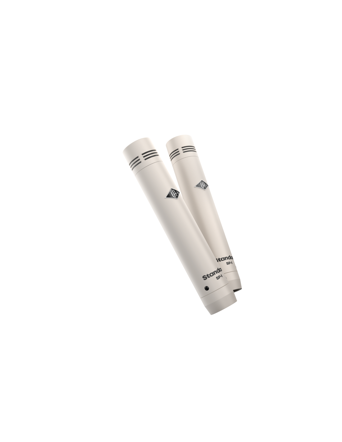 UNIVERSAL AUDIO SP-1 COPPIA. Coppia di microfoni a condensatore a schema polare cardioide a diaframma piccolo, adatti all'uso stereo overhead per batteria. Presentano preset selezionabili tramite Apollo Channel strip, 142db di SPL con solo 1% di distorsione armonica, alimentazione phantom +48. Includono 2 supporti per microfono, guida stereo, 2 antivento in schiuma, 2 adattatori filettati da 5/8" a 3/8.