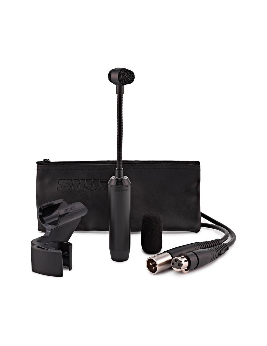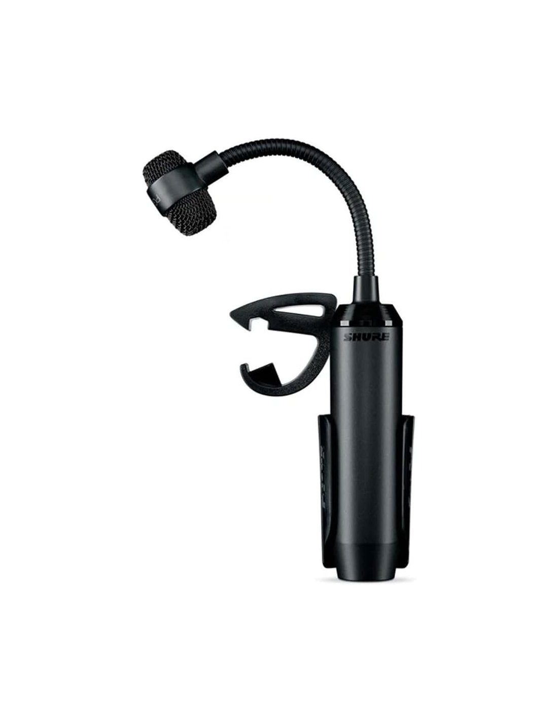 SHURE PGA98D è un microfono a condensatore a collo d'oca flessibile, adatto alla microfonazione di tamburi di batterie e percussioni. Le caratteristiche tecniche includono capsula microfonica cardioide ottimizzata per una precisa riproduzione di tamburi e percussioni, braccetto a collo d'oca per un rapido e preciso posizionamento, schema polare cardioide per la ripresa dlle sorgente senza rumori esterni, preamplificatore integrato con connettore XLR che fornisce l'alimentazione Phantom alla capsula, morsetto per aggancio al tamburo integrato, finitura metallica e griglia nera. Include cavo XLR/XLR da 4,60m, clip per asta, antivento e astuccio per il trasporto.