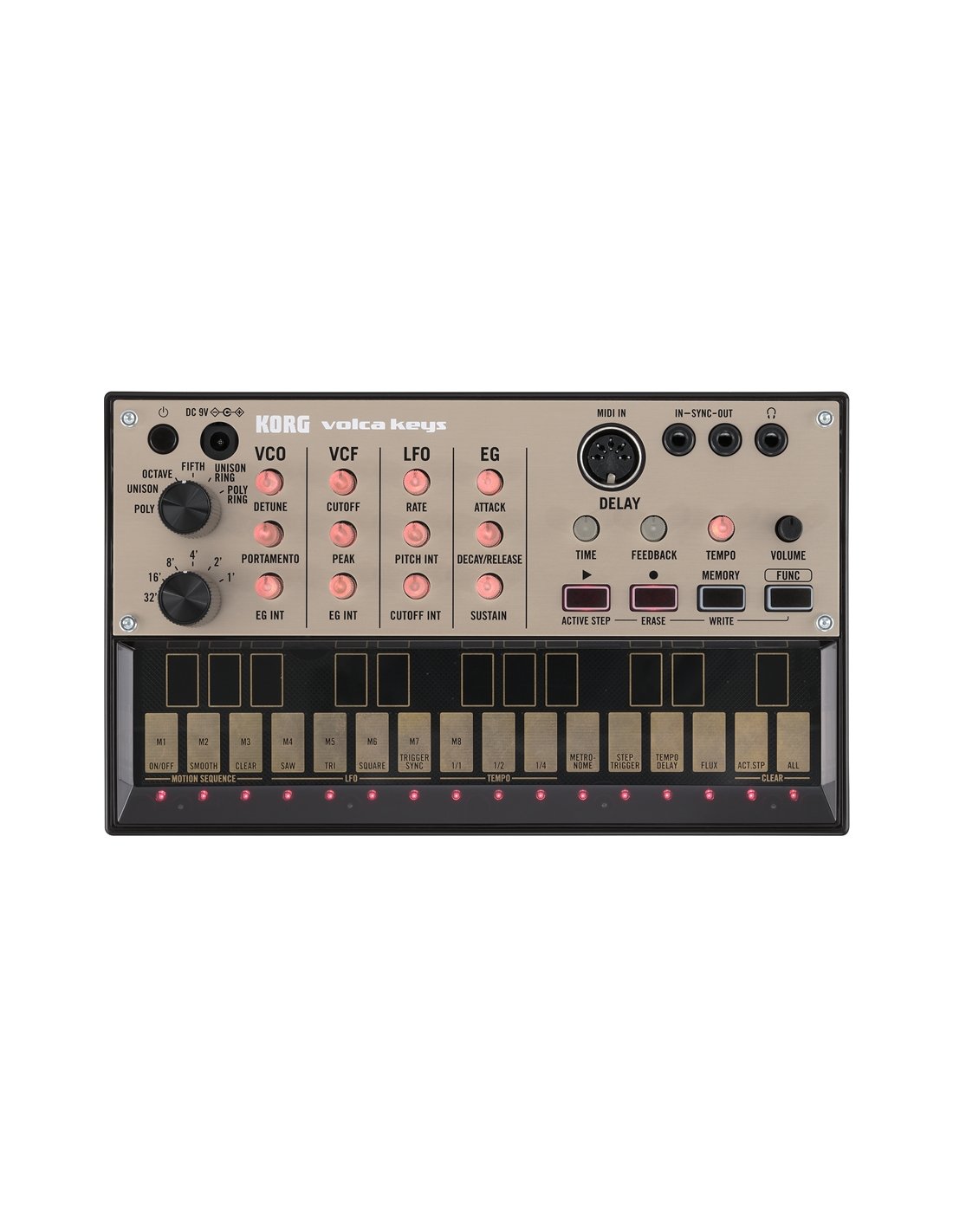 Il Volca Keys è un sintetizzatore della Korg. Il Volca Keys è un sintetizzatore analogico polifonico, dotato anche di loop sequencer. Questo synth di casa Korg permette una polifonia di 3 note, è dotato di un Delay, il loop sequencer permette di registrare agevolmente i passaggi che state suonando e il Motion sequencer permette di registrare l'edit attraverso i knobs in real-time. La funzione di self-tuning assicura un'intonazione stabile, rendono questo synth estremamente compatto un must have per i fan della trasportabilità unita alla potenza.
