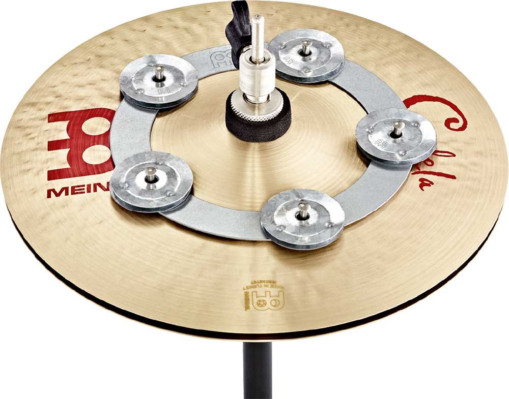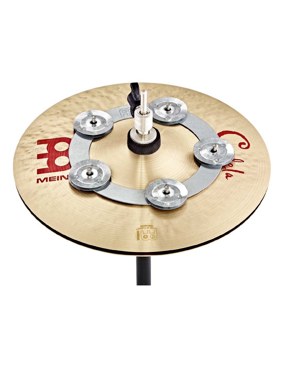 Anello in metallo con sonaglli da 6'' DCRING. Con un diametro di 6'', cerchio di schiuma, con cinque coppie di sonagli di zinco e veloce da assemblare. Incorporate un ''ching'' nei vostri backbeat mettendolo direttamente sui vostri piatti. Ideali per gli hi-hat, questi sonagli di zinco daranno un tocco diverso al tuo suono aggiungendo un suono metallico che si fonderà perfettamente con i tuoi ritmi. Posizionare il Dcring su crash e rides, per alcuni suoni veramente innovativi.