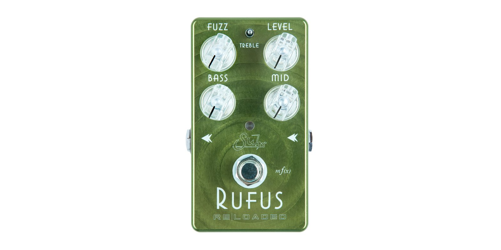 Pedale per Chitarra Suhr Rufus Reloaded. Il Suhr Rufus Reloaded è un pedale fuzz per chitarra true bypass. E' dotato dei controlli Fuzz, Level, Bass, Mid, del mini switch Treble e dello switch multifunzione "mf(x)" che permette di selezionare le modalità Normal e Octave-up tenendo premuto il pulsante d'attivazione per qualche secondo.