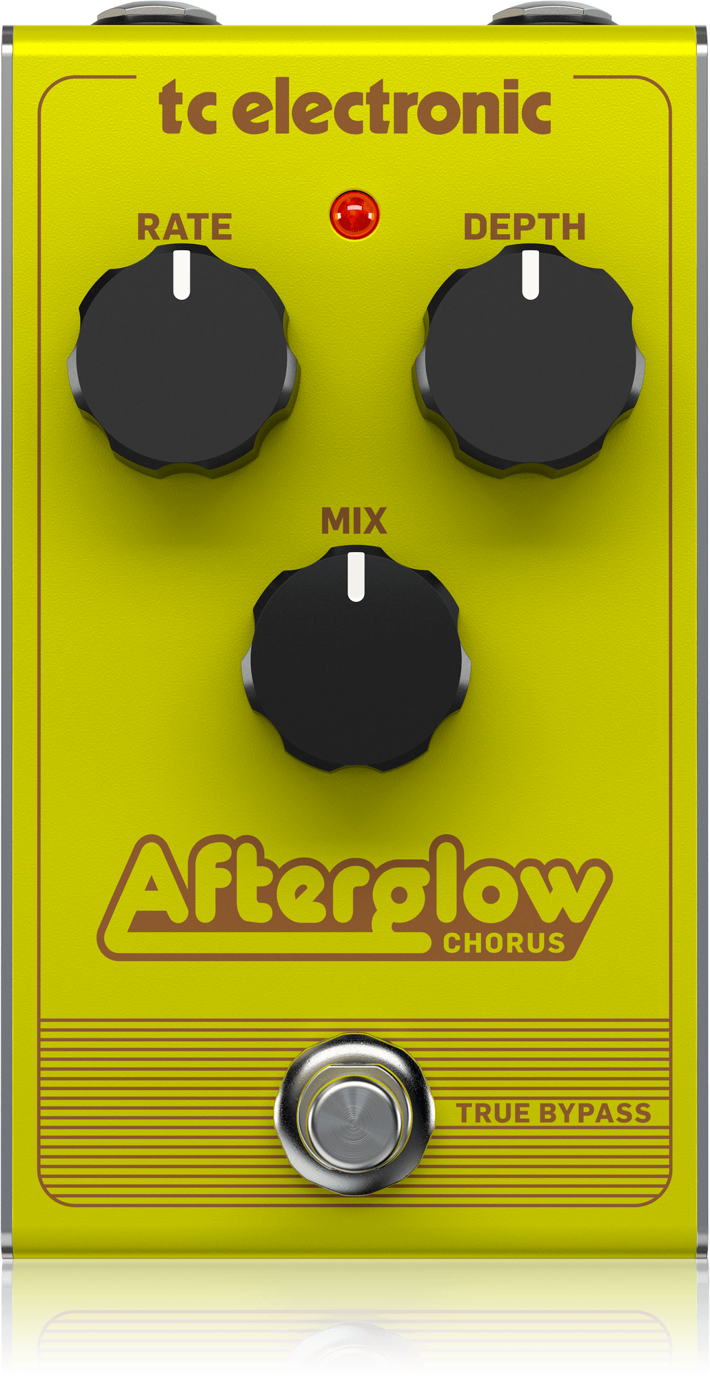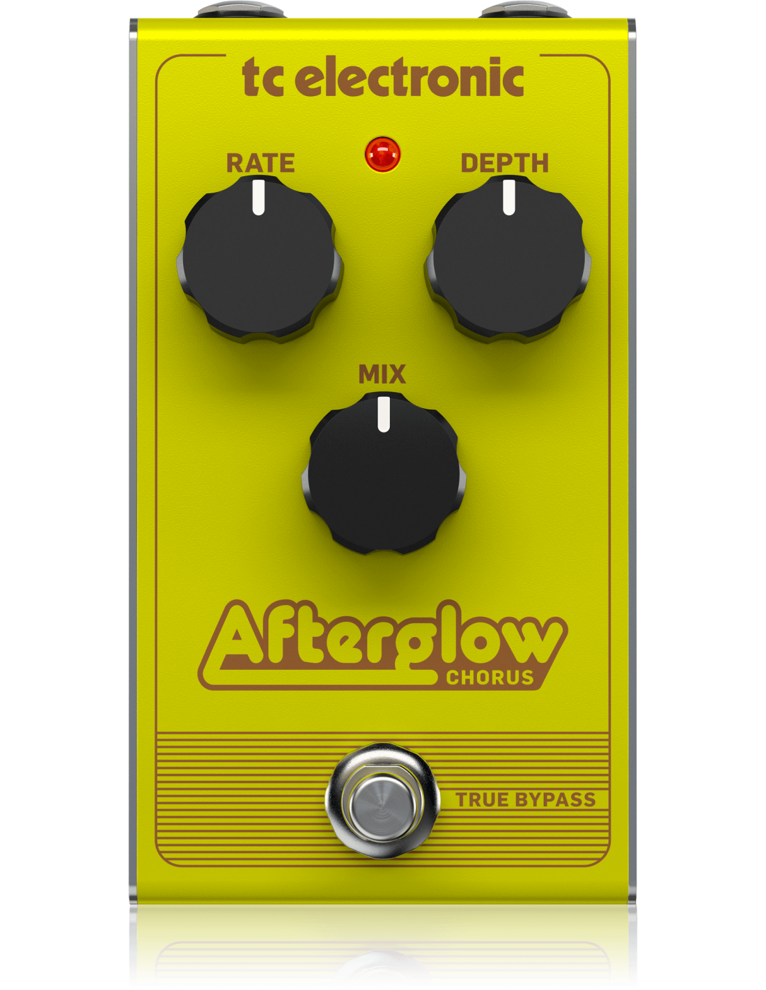 TC Electronic Afterglow Chorus è un pedale chorus in stile vintage con circuito analogico Bucket Brigade, controlli di mix, rate, depth e funzionamento true bypass.