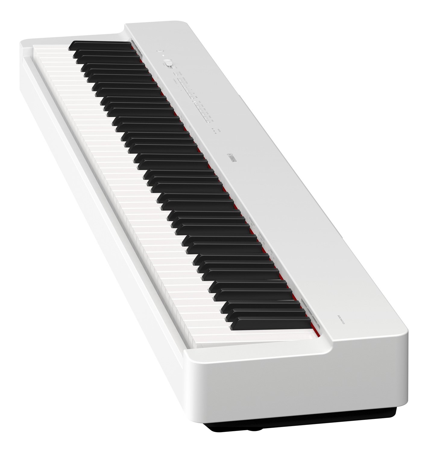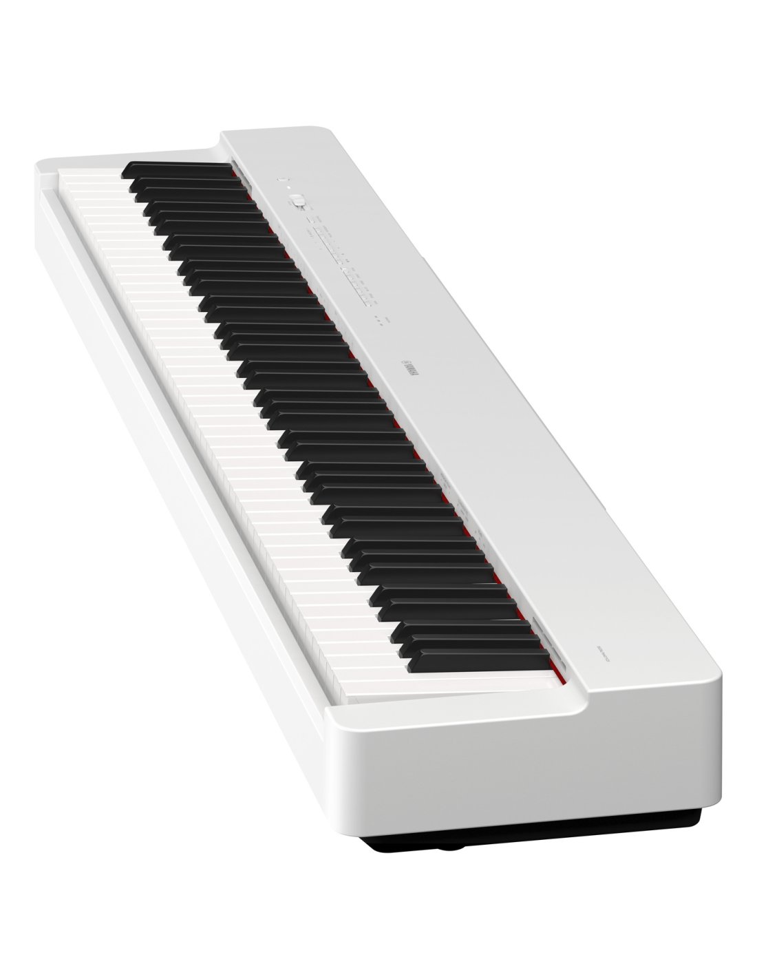 Il P225B è un pianoforte digitale compatto della Yamaha di colorazione bianca, con 88 tasti. È dotato di un design del corpo corto e sottile e una tastiera con tecnologia Graded Hammer Compact che offre la stessa sensazione di di suonare un pianoforte acustico con tasti pesati.