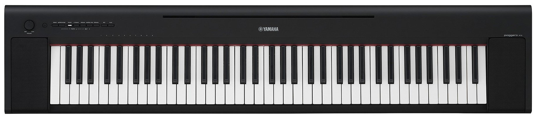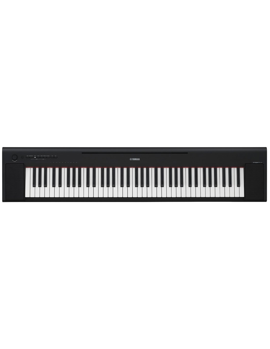L' NP35B è un pianoforte digitale compatto della Yamaha di colorazione nera. È dotato di 76 tasti con un tocco più leggero che facilita i pianisti principianti e un peso di soli 6 kg per un facile trasporto.