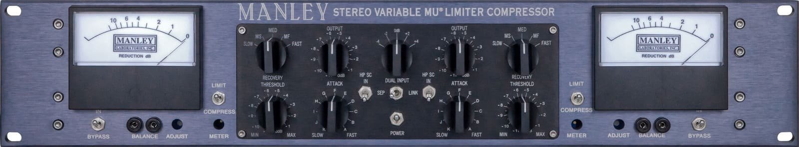 Il Manley Variable MU Limiter Compressor è un compressore, con risposta in frequenza di 20 Hz - 25 kHz e input e output bilanciati. Il Manley Variable MU Limiter Compressor è dotato di una circuiteria completamente valvolare e rappresenta ormai uno standard negli studi di registrazione professionali, grazie al suo modo unico di effettuare la compressione tramite il re-biasing della valvola.