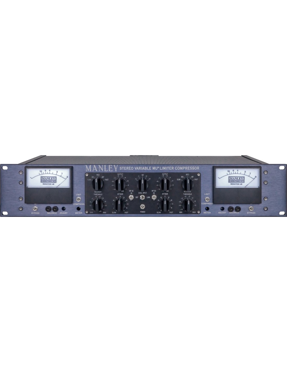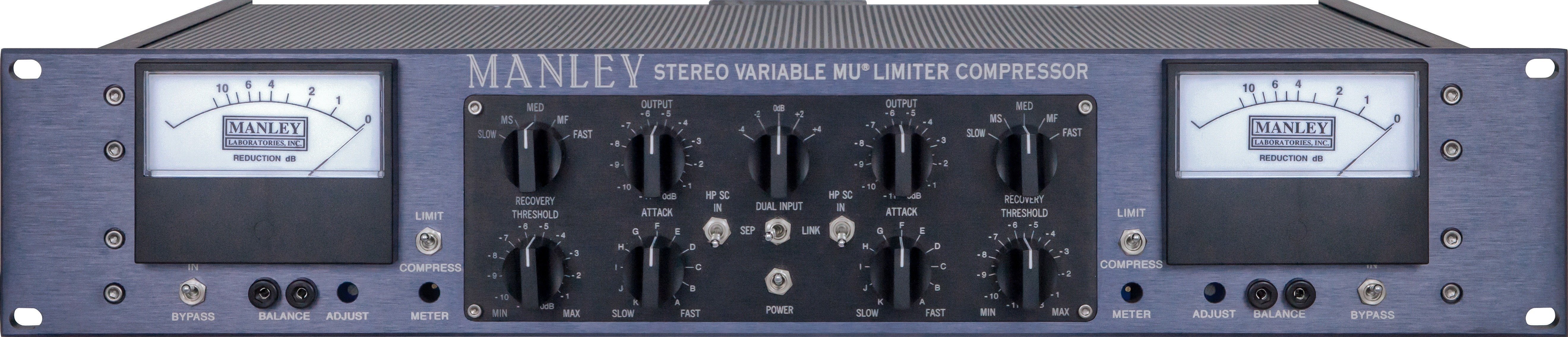 MANLEY STEREO VARIABLE MU MASTERING VERSION è un compressore/limiter specifico per mastering audio. Le caratteristiche tecniche includono trasformatori d’ingresso e d’uscita MANLEY, case in metallo con laminazioni in nichel, risposta in frequenza piatta da 20Hz-25KHz, ingressi e uscite bilanciate (600 Ohm), circuito valvolare completamente differenziale con valvole 5670, 5751, 7044 o 5687 e 12AL5 per canale, alimentazione B+ e di riscaldamento regolata in modo indipendente, hard-wire BYPASS switch, attenuatore INPUT con switch a steps, RECOVERY 5 steps: 0.2s, 0.4s, 0.6s, 4sec., 8sec., attacco variabile: 25msec-70msec, Limiter (da 4:1 a 20:1) o compressione (da 1.5 a 1), grandi meter Sifam illuminati.