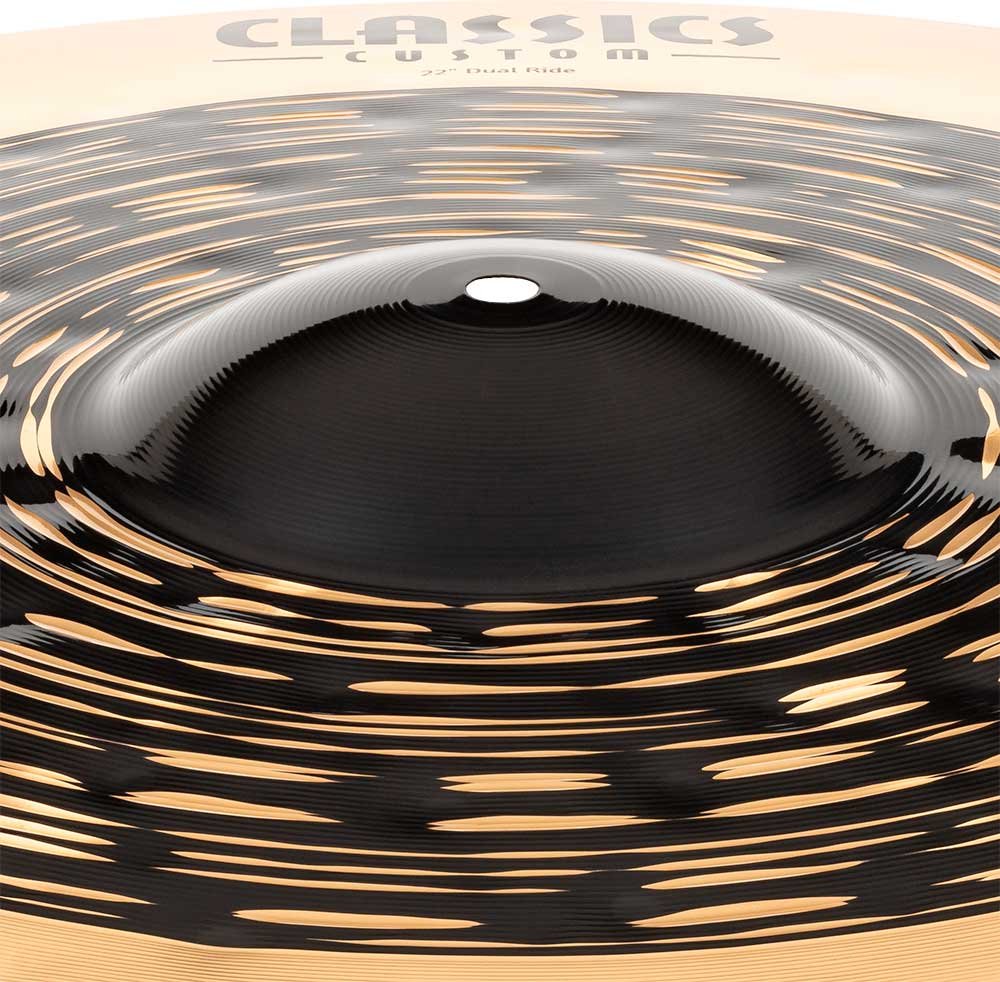 'Classics Custom Dual 22'' Ride. I nuovi Classics Custom Dual presentano un'estetica spettacolare, ma le loro caratteristiche sonore lo sono ancora di più. Il suono di base scuro, la tornitura e la parte esterna lucida, conferiscono grande versatilità e ottima risposta alla bacchetta. La parte centrale dark dona al piatto un carattere esplosivo e potente. I piatti sono realizzati in Germania, con lega di Bronzo B12. Riteniamo inoltre importante sottolineare che sono realizzati al 100% con energia rinnovabile che produciamo nel nostro stabilimento.