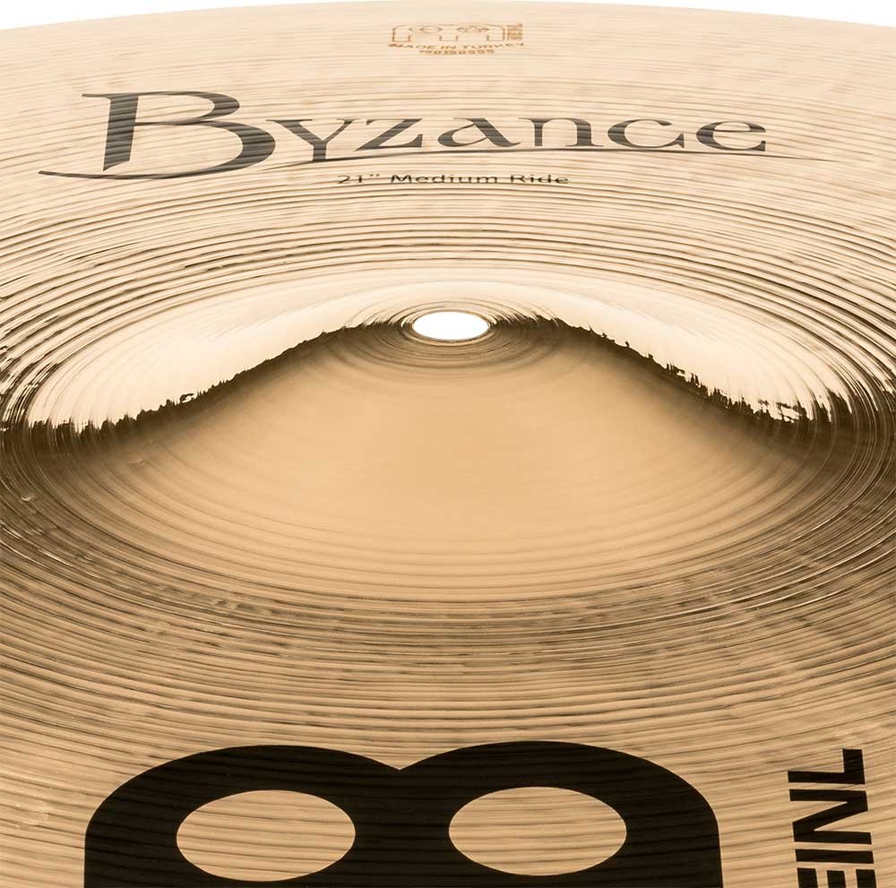 'Ride 21'' Medium, Serie Byzance Brilliant. I piatti della serie Byzance Brilliant sono prodotti artigianalmente nella nostra fabbrica in Turchia dalle mani di specialisti e rispettando la tradizione in tutto il processo. Tutti i piatti sono realizzati con dischi in lega di bronzo B20. Varie tecniche sono coinvolte nel processo, sia la martellatura che la tornitura. Oltre a questo ricevono una laccatura lucida che conferisce loro un suono più esplosivo e una spettacolare finitura lucida.