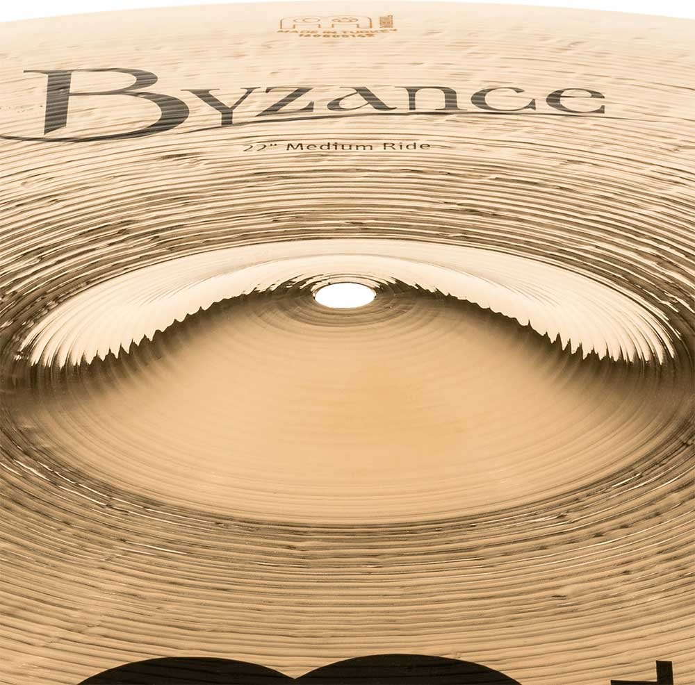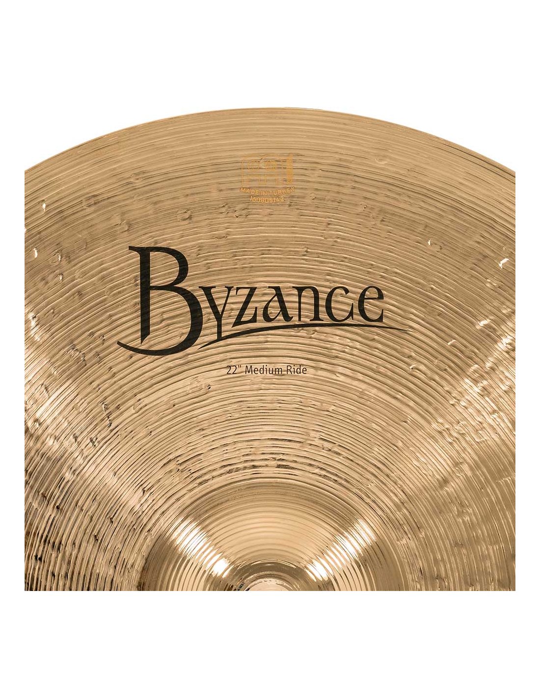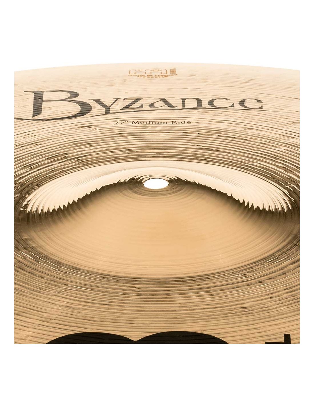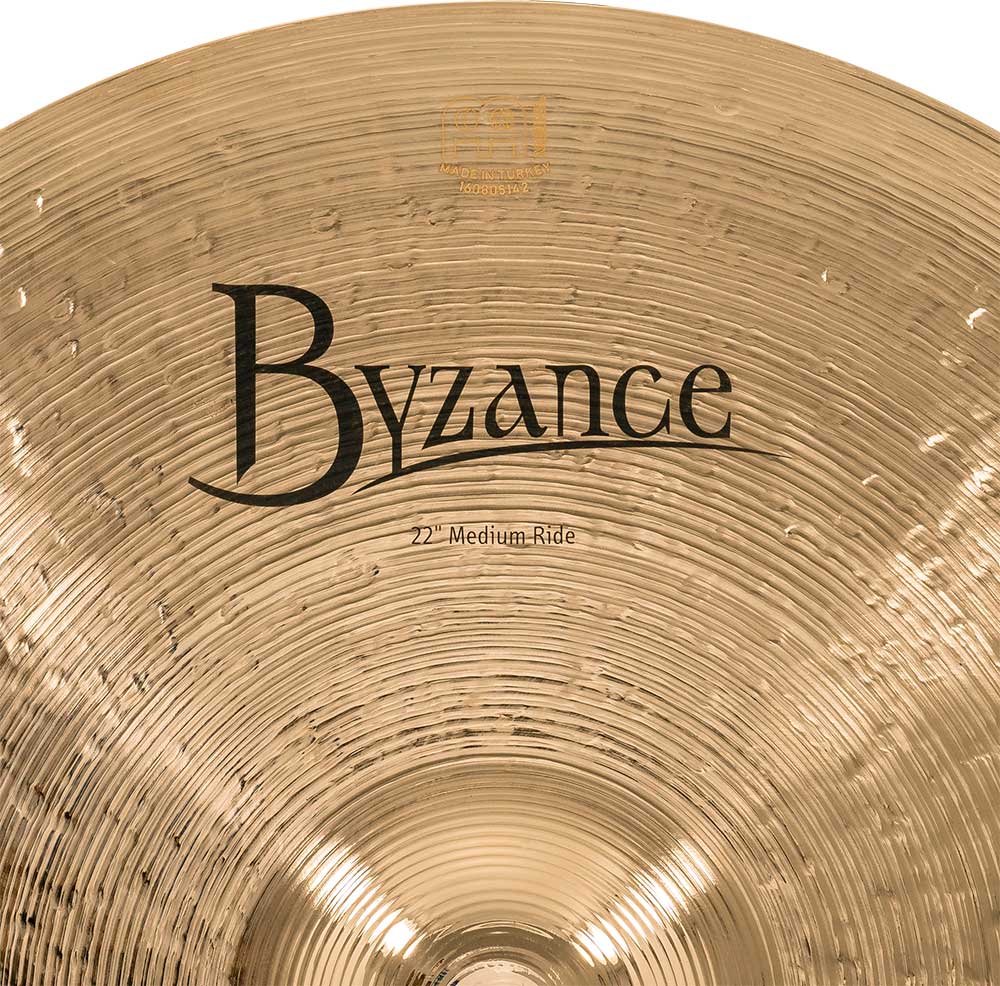 'Ride 22'' Medium, Serie Byzance Brilliant. I piatti della serie Byzance Brilliant sono prodotti artigianalmente nella nostra fabbrica in Turchia dalle mani di specialisti e rispettando la tradizione in tutto il processo. Tutti i piatti sono realizzati con dischi in lega di bronzo B20. Varie tecniche sono coinvolte nel processo, sia la martellatura che la tornitura. Oltre a questo ricevono una laccatura lucida che conferisce loro un suono più esplosivo e una spettacolare finitura lucida.