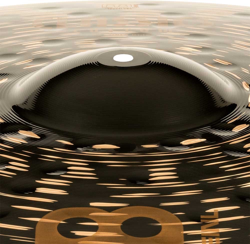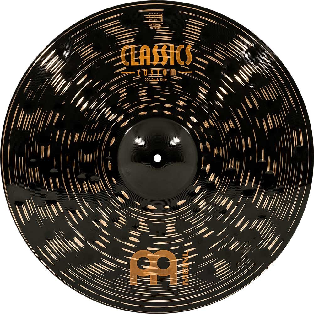 'Ride 22'' Serie Classics Custom Dark. I piatti della serie Classics Custom Dark sono prodotti meccanicamente in Germania su lega B10. Il processo coinvolge varie tecniche, sia di pressione che di martellamento computerizzato. Inoltre, hanno una finitura nera lucida che dà loro un aspetto spettacolare e un suono particolare.