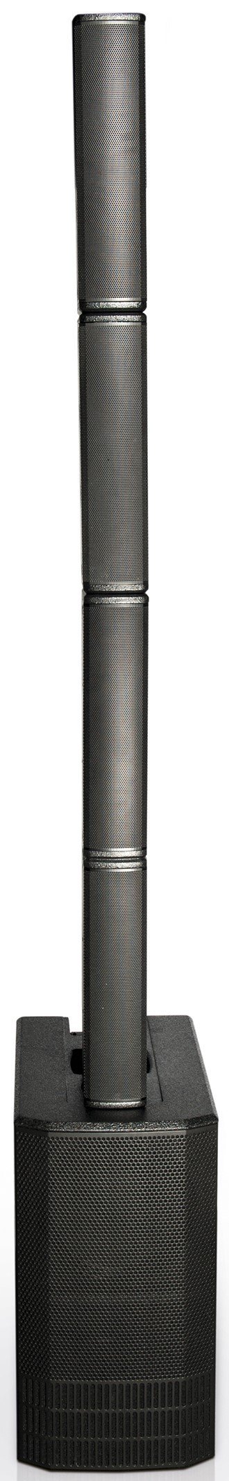 DB TECHNOLOGIES ES1203 è un sistema audio stereo con connettività Bluetooth, costituito da 2 satelliti passivi e 1 Subwoofer attivo tri-amplificato da 2500W di potenza a picco. Le caratteristiche tecniche includono, 2 satelliti con 4 mid-woofer ciascuno da 4" che possono essere montati su stativi o palo integrabile al Woofer (non in dotazione,) Subwoofer attivo dotato di 2 driver LF da 12" e amplificatore Digipro G4 con DSP per la completa gestione del mixer a 3 canali e dell'effettistica integrata. Il mixer è dotato di 3 canali microfonici tramite ingressi combo XLR/Jack; il primo Mic/instrument, presenta un filtro anti feedback regolabile e un selettore a 3 vie di compensazione dell'impedenza e gain del microfono. Presenta un'uscita bilanciata tramite XLR per link ad altri speaker.