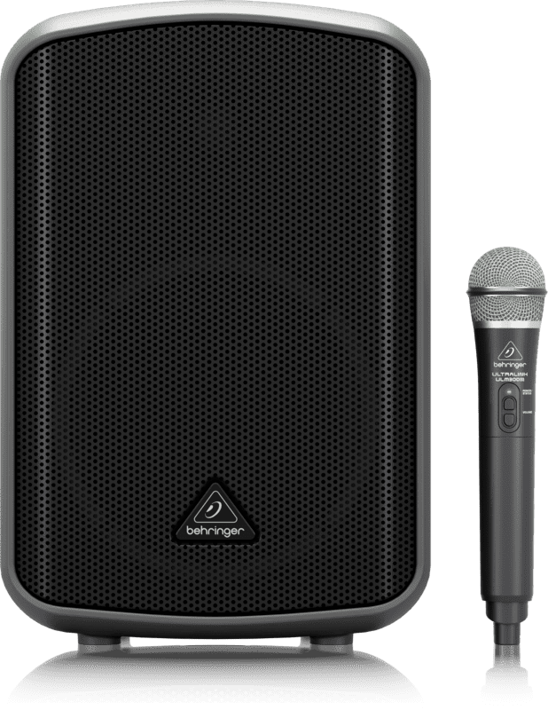 BEHRINGER MPA200BT. Cassa attiva bluetooth da 200W in classe D con funzionalità Wireless e streaming audio. Le caratteristiche tecniche includono speaker da 8" ad alta risoluzione con tweeter da 1", mixer digitale a 4 canali con tecnologia Klark Tecnik con manopola di controllo e tasti funzione dedicati, presa USB, 2 uscite combo XLR/TRS, uscita XLR per linkare altri speakers. Include microfono Wireless Behringer ULM