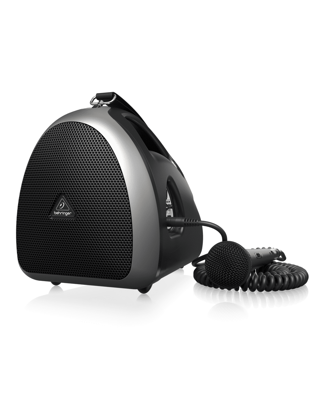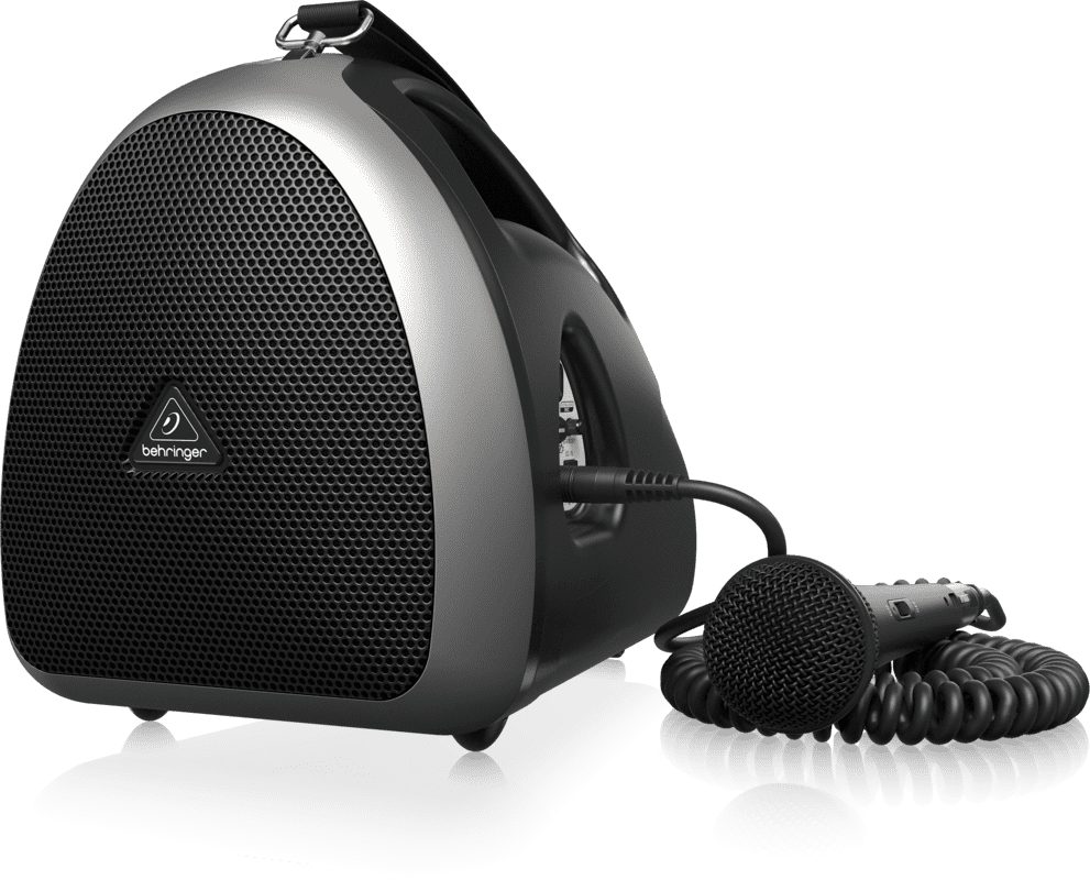 BEHRINGER HPA40. Sistema di amplificazione ultra compatto e portatile dotato di microfono. Le caratteristiche tecniche includono 40W di potenza, speaker da 5" full range, sistema Wireless ready per collegare i dispositivi behringer senza fili, ingresso Mic tramite TRS 1/4" e aux tramite jack 3,5mm per il collegamento di dispositivi audio, LED per standby e controllo livello della batteria, ingresso USB. Viene fornito con microfono Behringer XM1800S e cavo da 1m e funziona con batteria integrata ricaricabile.