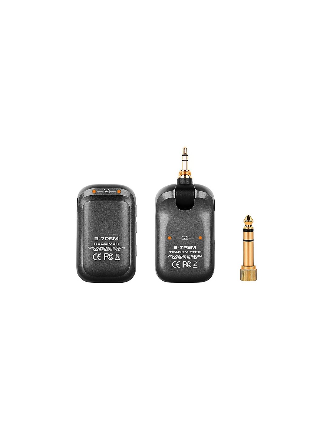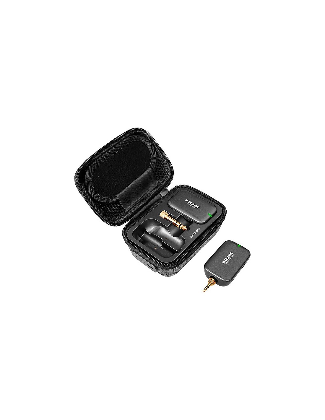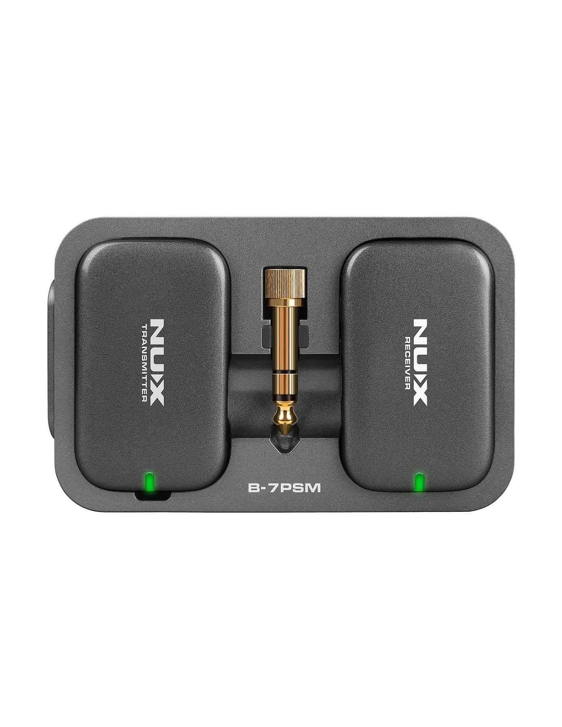 NUX B-7 PSM. Sistema In Ear Monitoring Wireless modulare in grado di gestire fino a 10 ricevitori in simultanea con scansione automatica dell'ambiente RF, tramissione wireless Stereo 5.8 GHz 24-bit/40kHz, funzione Auto-Matching integrata per connessioni immediate, controllo del volume, 30m di portata in campo aperto, batterie integrate ricaricabili via Power case. Include cavo USB di ricarica e adattatore jack stereo 6,3mm TRS placcato oro.