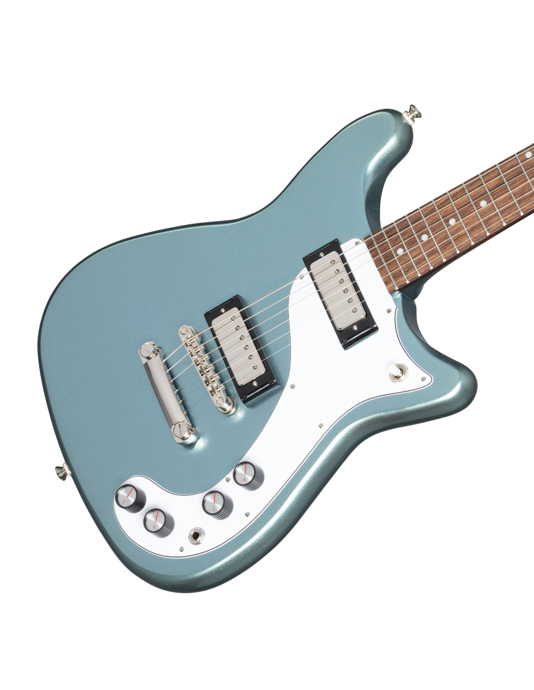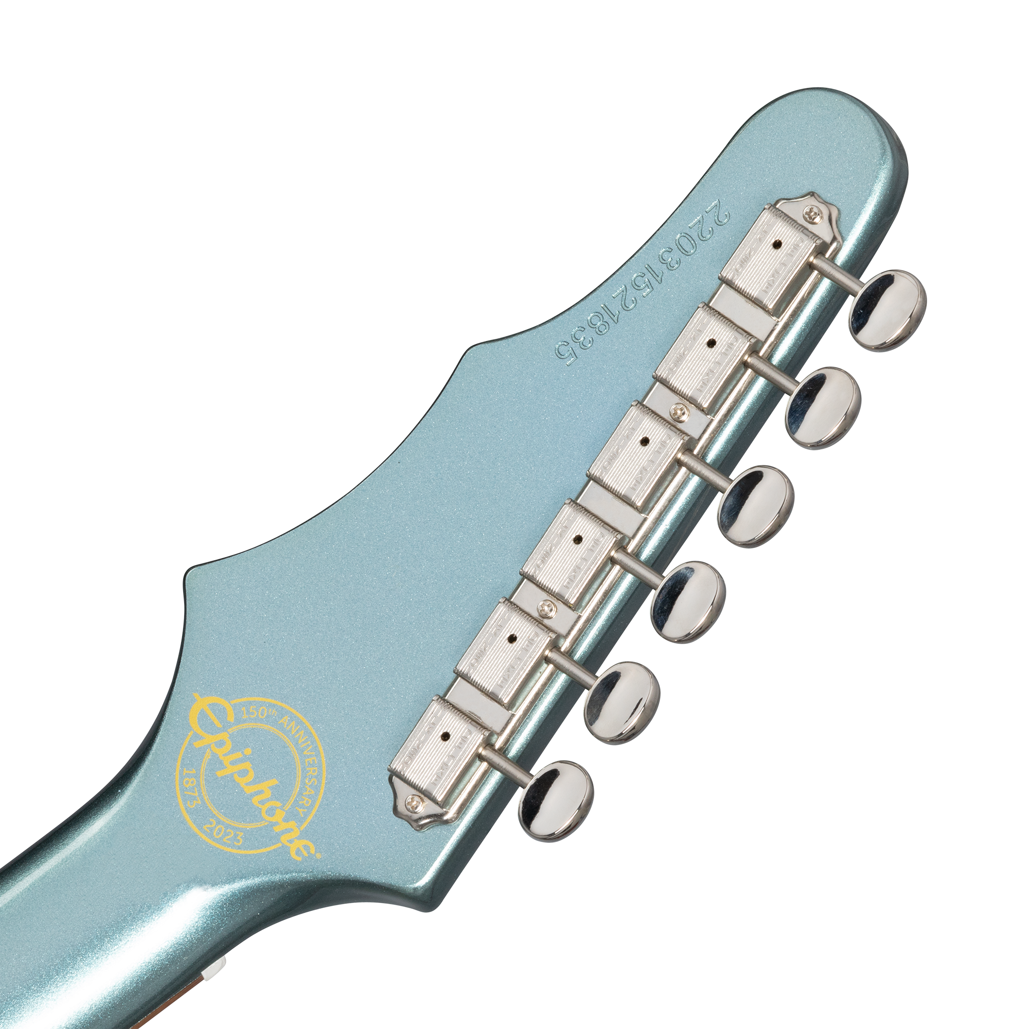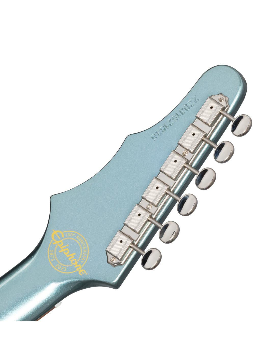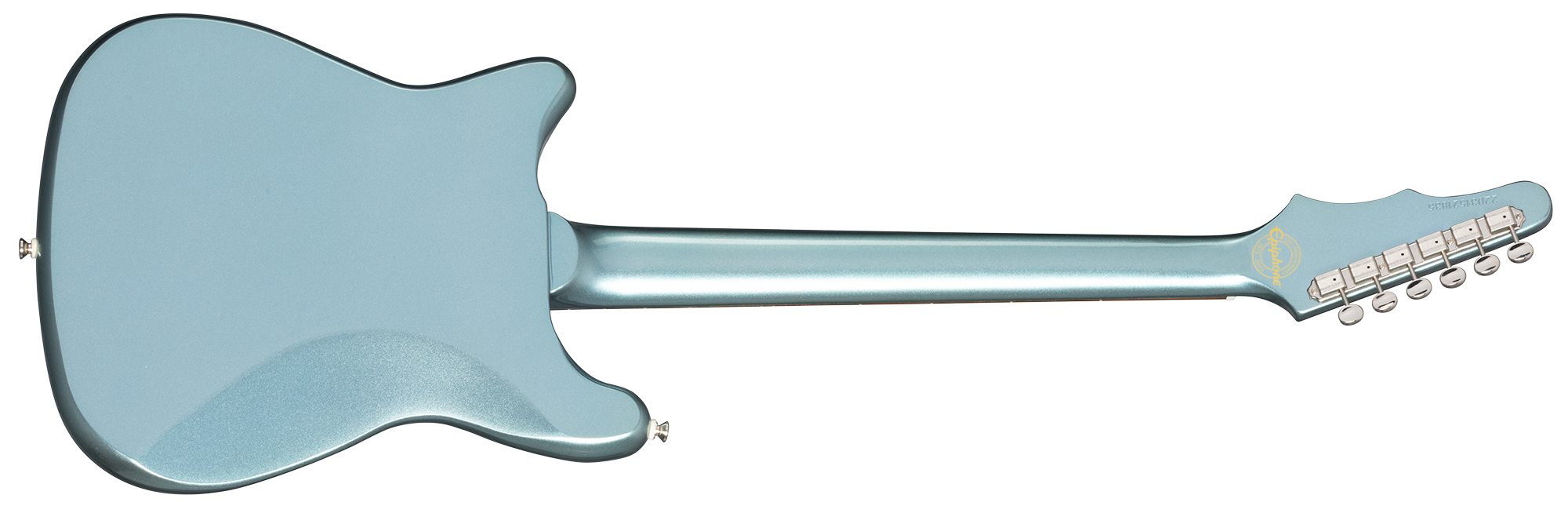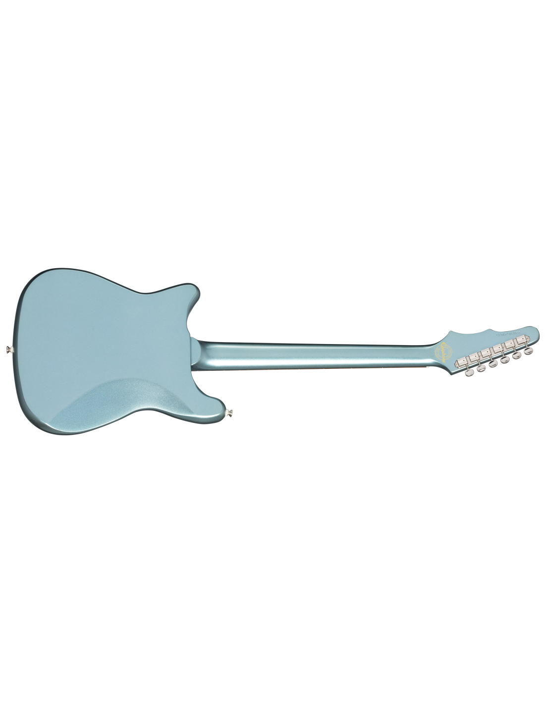 Chitarra Elettrica Epiphone 150th Anniversary Wilshire colore PACIFIC BLUE con Case. La Epiphone 150th Anniversary Wilshire è una chitarra elettrica a 6 corde. Le caratteristiche tecniche includono corpo in mogano asimmetrico con doppio taglio stile Wilshire, manico in mogano con profilo comodo 60s Slim Taper TM D, tastiera in lauro indiano con intarsi a punto, 22 tasti medium jumbo, paletta stile batwing con meccaniche Wilkinson, mini humbucker Gibson TM made in US, vibrato Epiphone Tremotone. Include custodia rigida.