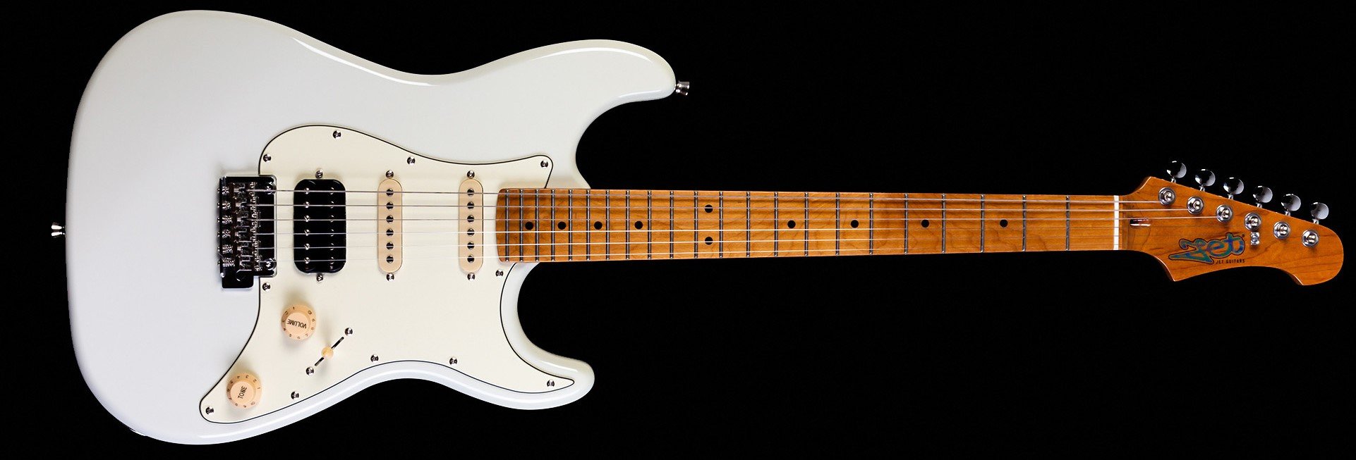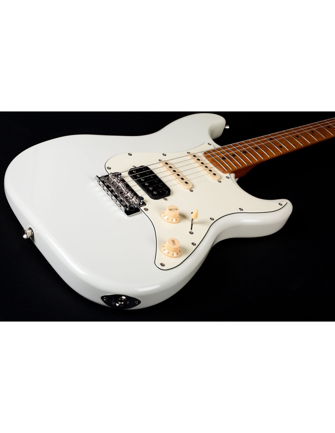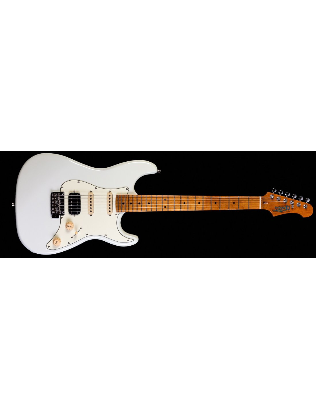 JET JS-400 OW HSS OLYMPIC WHITE ROASTED MAPLE. Chitarra elettrica JET JS-400 OW HSS con corpo in Tiglio, manico in acero canadese con profilo a "C", tastiera in Acero Roasted a raggio 9,5" con 22 tasti, intarsi Dot neri e finitura Olympic White. L'elettronica a configurazione HSS è dotata di 1 pickup Humbucker ceramico al ponte e 2 Single Coil ceramici al centro e al manico con controlli Master Volume, Master Tone e switch a 5vie. Presenta inoltre ponte tremolo, Trussrod a doppia azione, meccaniche e hardware cromati.