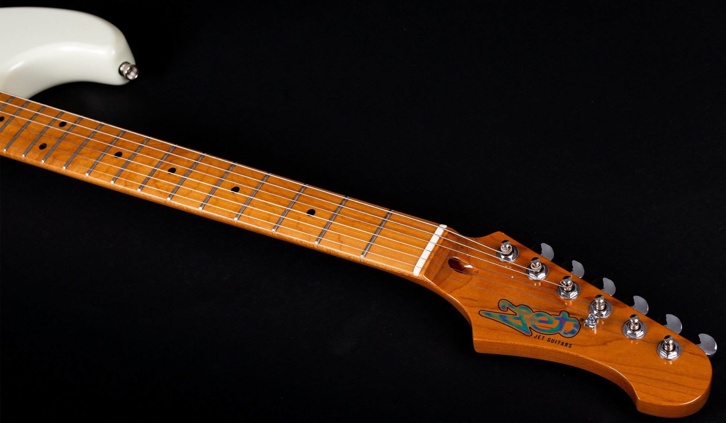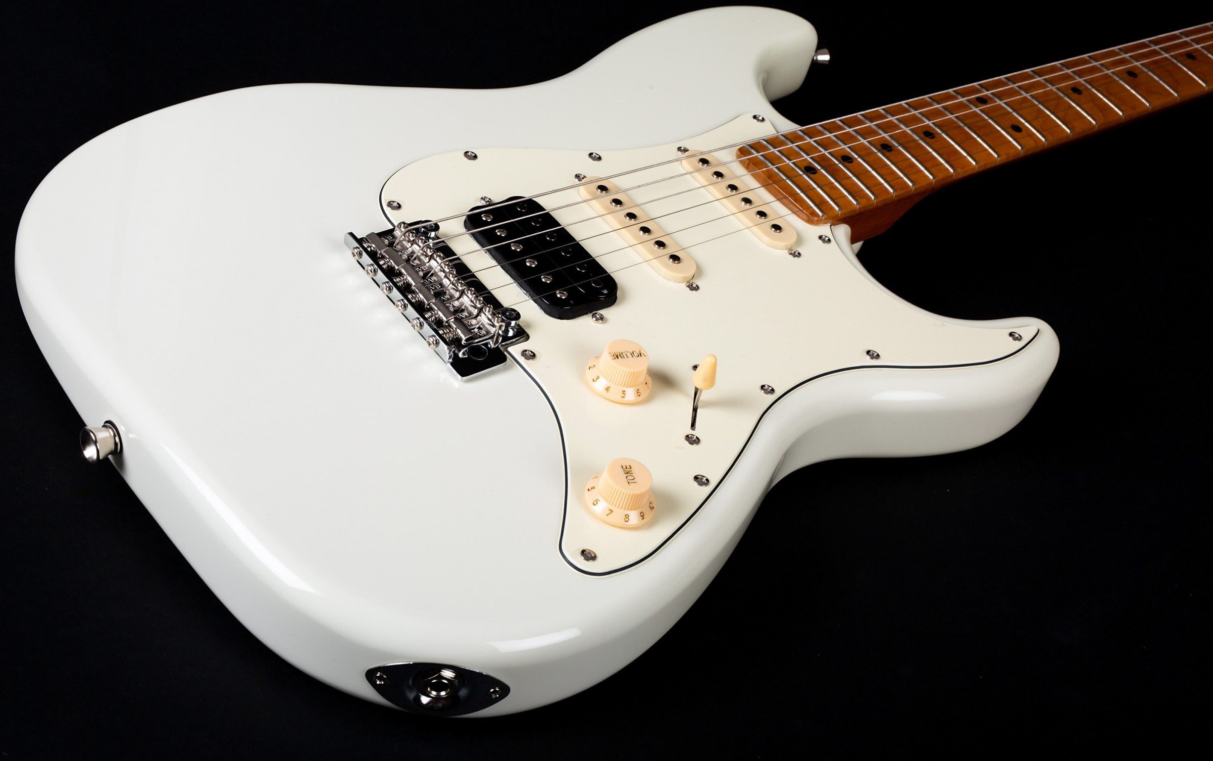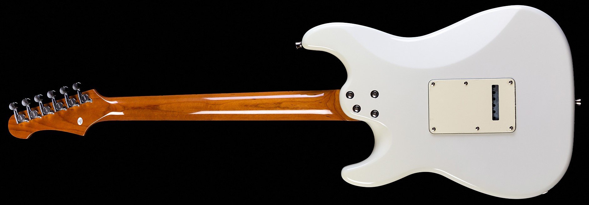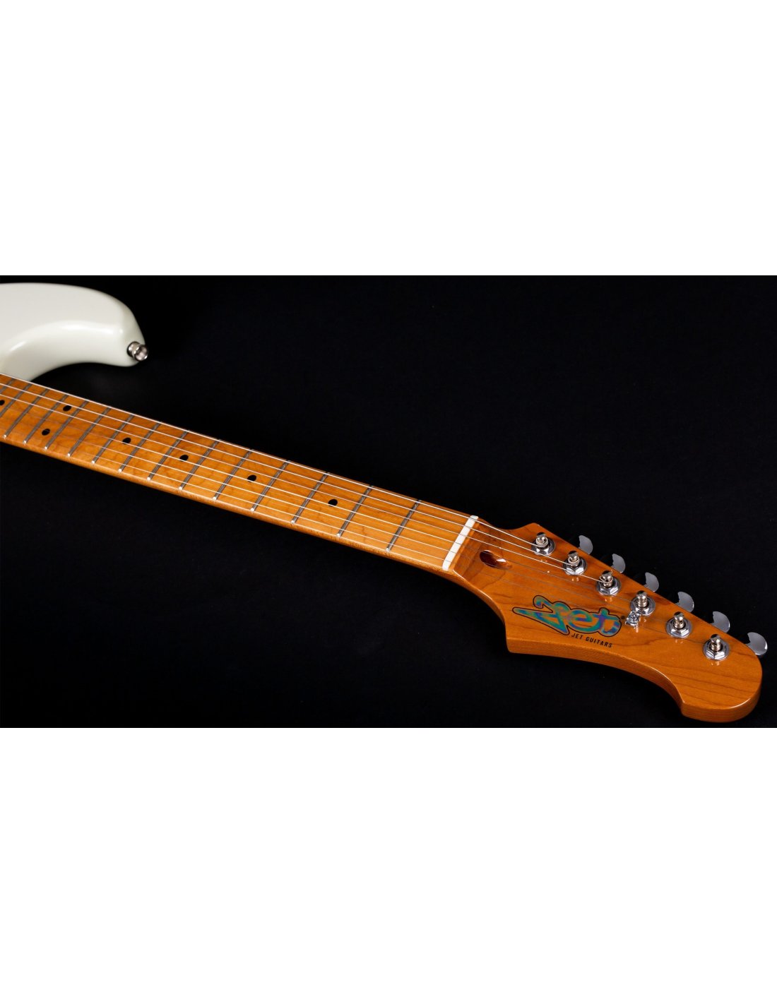 JET JS-400 OW HSS OLYMPIC WHITE ROASTED MAPLE. Chitarra elettrica JET JS-400 OW HSS con corpo in Tiglio, manico in acero canadese con profilo a "C", tastiera in Acero Roasted a raggio 9,5" con 22 tasti, intarsi Dot neri e finitura Olympic White. L'elettronica a configurazione HSS è dotata di 1 pickup Humbucker ceramico al ponte e 2 Single Coil ceramici al centro e al manico con controlli Master Volume, Master Tone e switch a 5vie. Presenta inoltre ponte tremolo, Trussrod a doppia azione, meccaniche e hardware cromati.