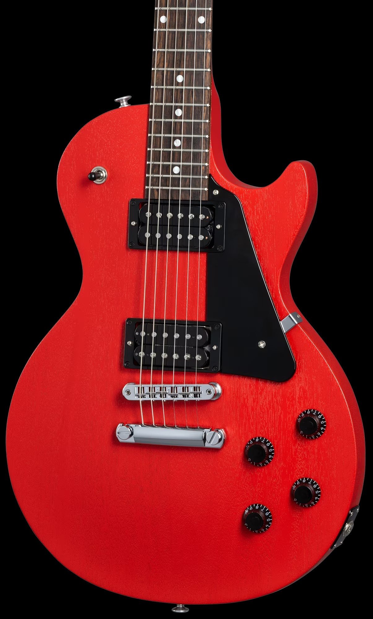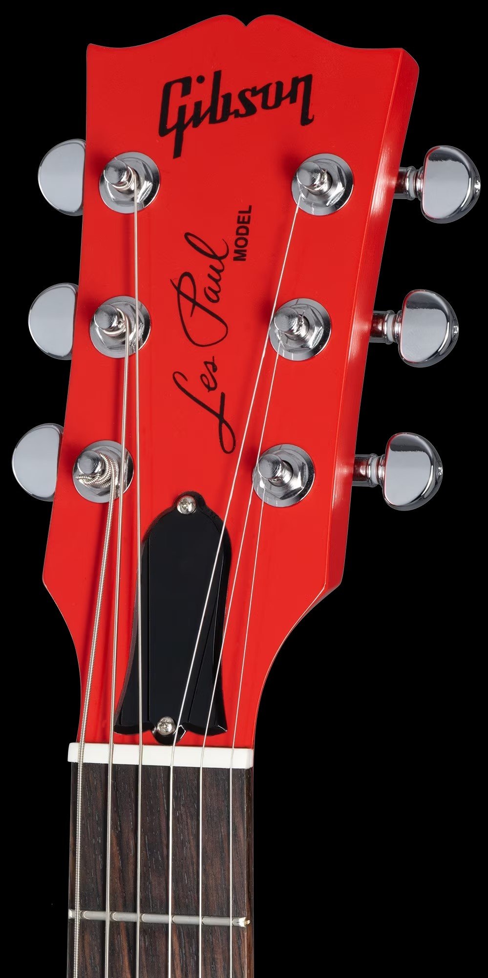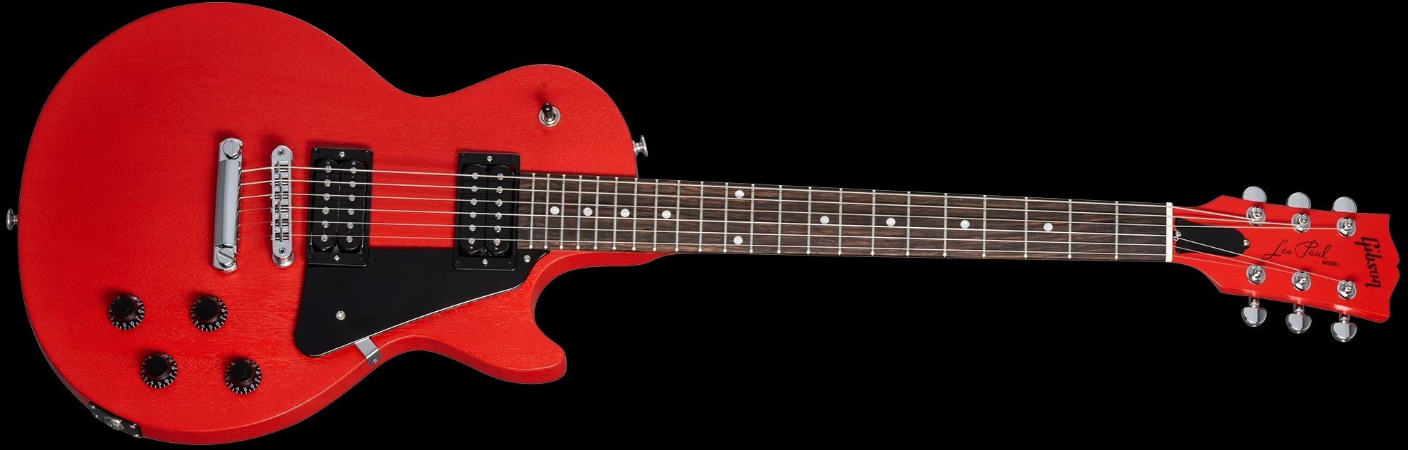 GIBSON LES PAUL MODERN LITE CARDINAL RED. Chitarra elettrica Solid body Gibson Les Paul Modern Lite con corpo sottile in mogano alleggerito, fondo in acero, manico in mogano a profilo SlimTaper, tastiera in palissandro indiano a raggio 12" con 22 tasti Medium-Jumbo ed intarsi dot in acrilico, capotasto Graph Tech, meccaniche Grover Mini Rotomatic, hardware cromato e ponte Nashville Tune-O-Matic con cordiera Stopbar in alluminio. L'elettronica consiste in 2 pickup Humbucker: 498T al ponte e 490R al manico con potenziometri conici CTS 500K 2x volume/ 2x tono push pull, condensatori carta-olio e selettore pickup Switchcraft a 3 vie. Include custodia morbida.