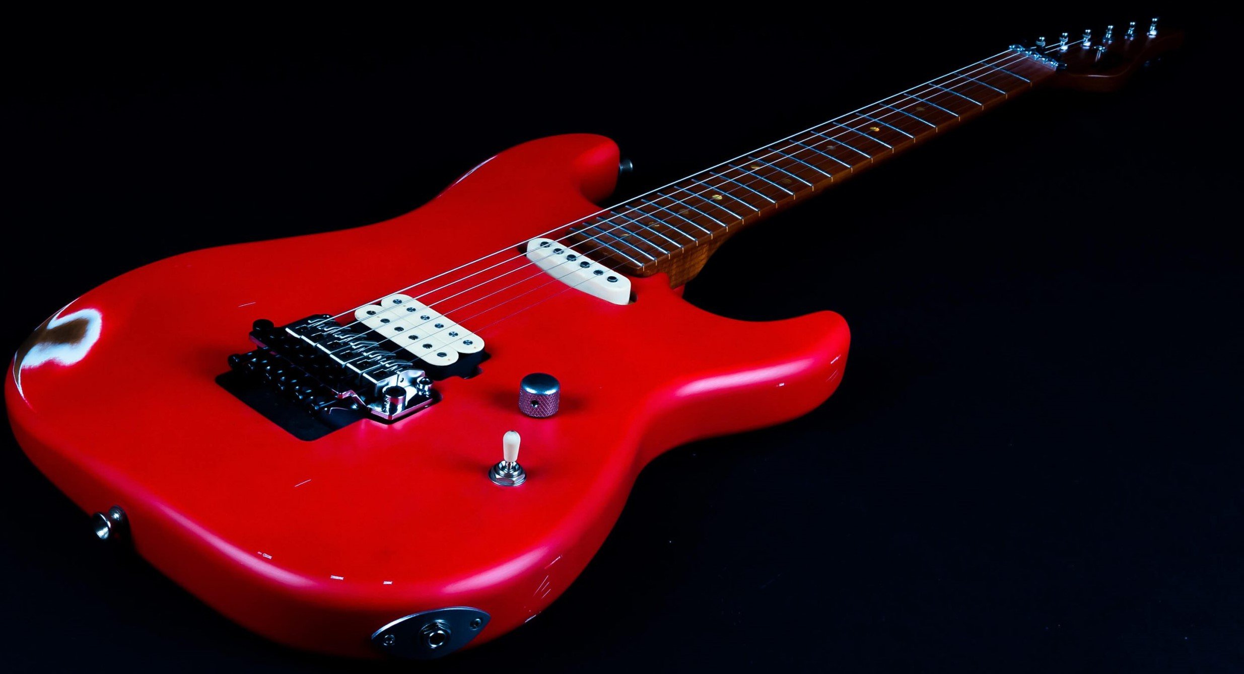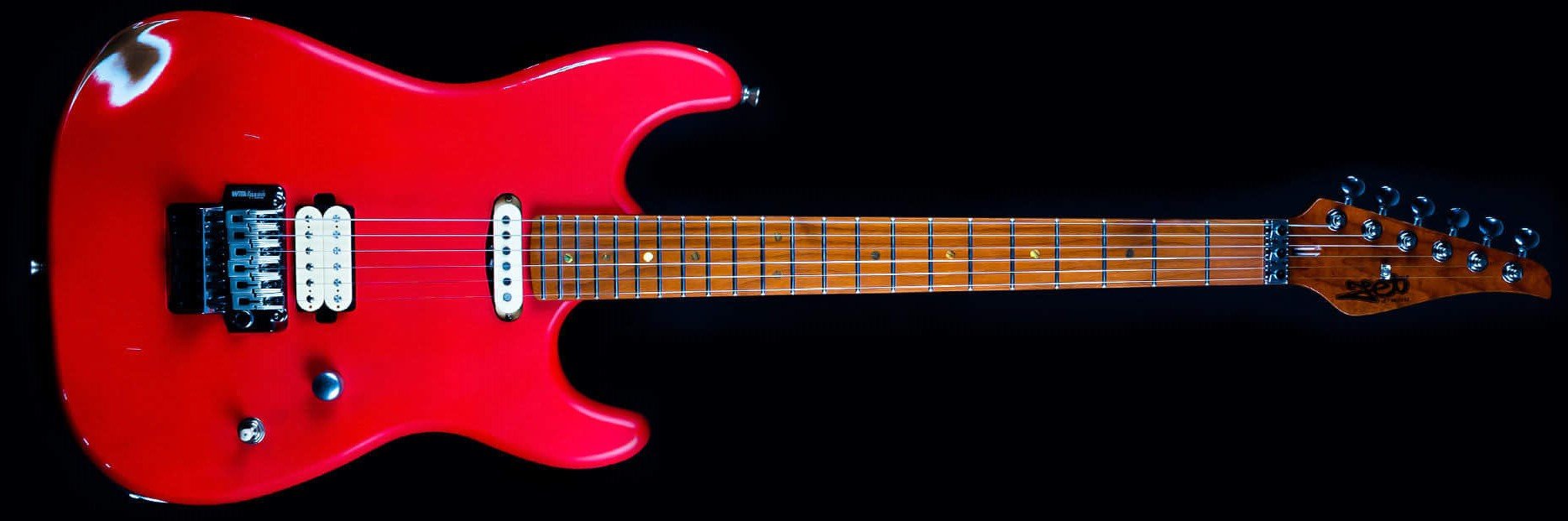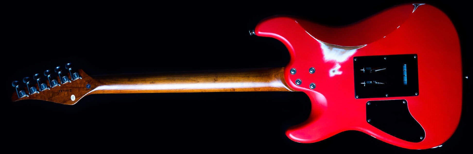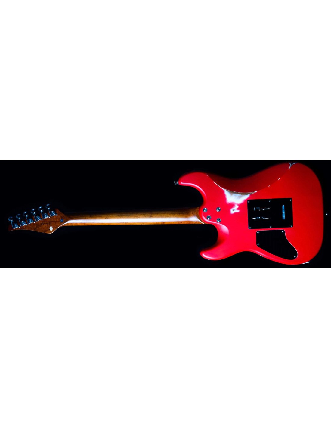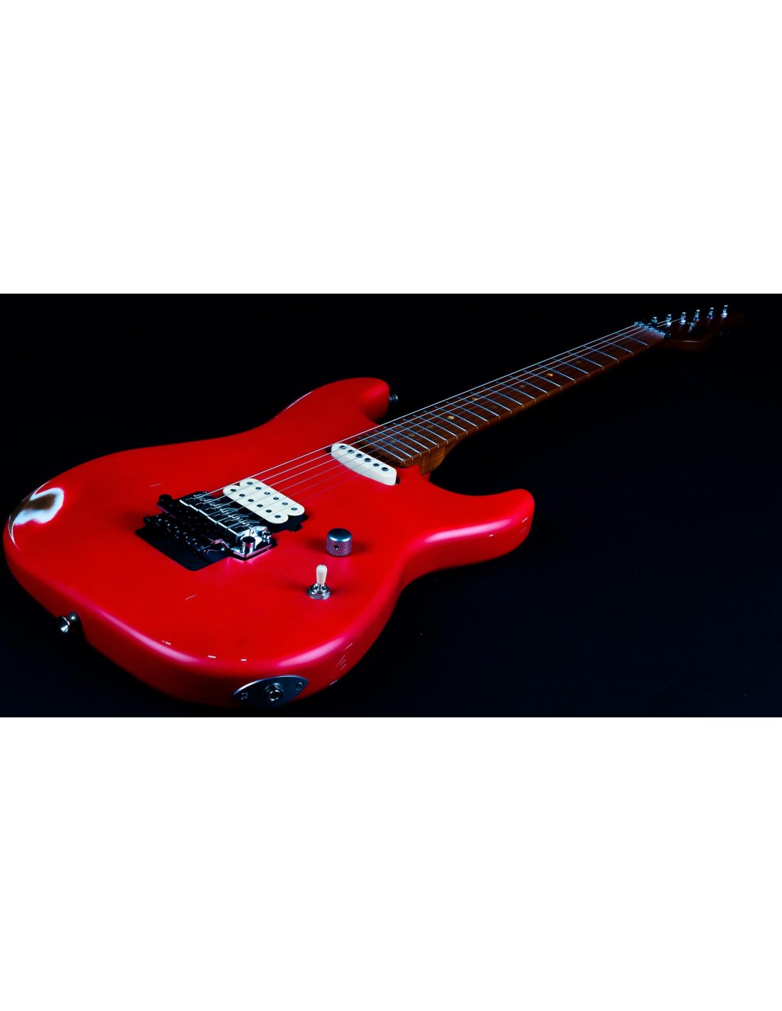 JET JS-850 RELIC RED HS ROASTED MAPLE è una chitarra elettrica solid body Strato Style, modello JS-600 HSS, con corpo in Alder (ontano) invecchiato, manico in Acero Roasted canadese a profilo Modern "C" shape, tastiera in Acero Roasted a raggio 9,5" con 22 tasti Medium Jumbo, Truss Rod Double Action, capotasto Locking, hardware Chrome Aged, meccaniche chiuse pressofuse e ponte Tremolo a 6 sellette Block Wilkinson Double Locking. L'elettronica a configurazione HS consiste in un set di pickup Humbucker e Single-Coil HS Alnico V J-87 avvolti a mano, con controllo Master Volume e selettore pickup a 3 vie.