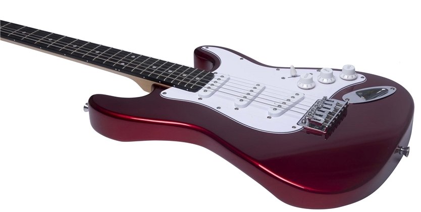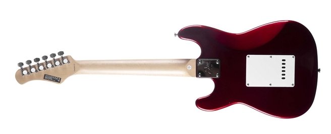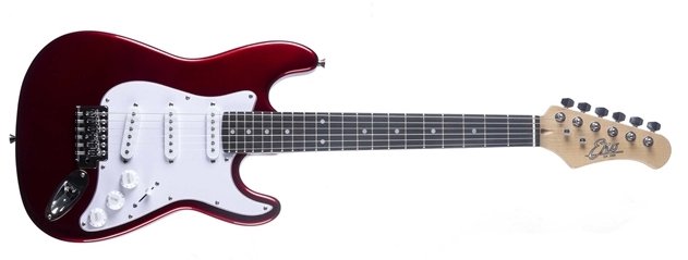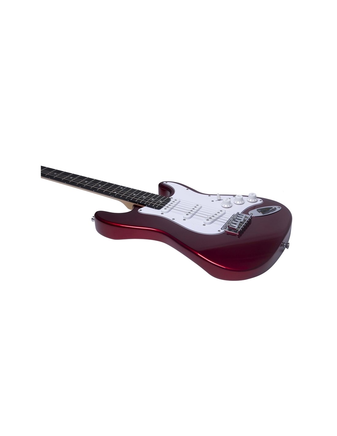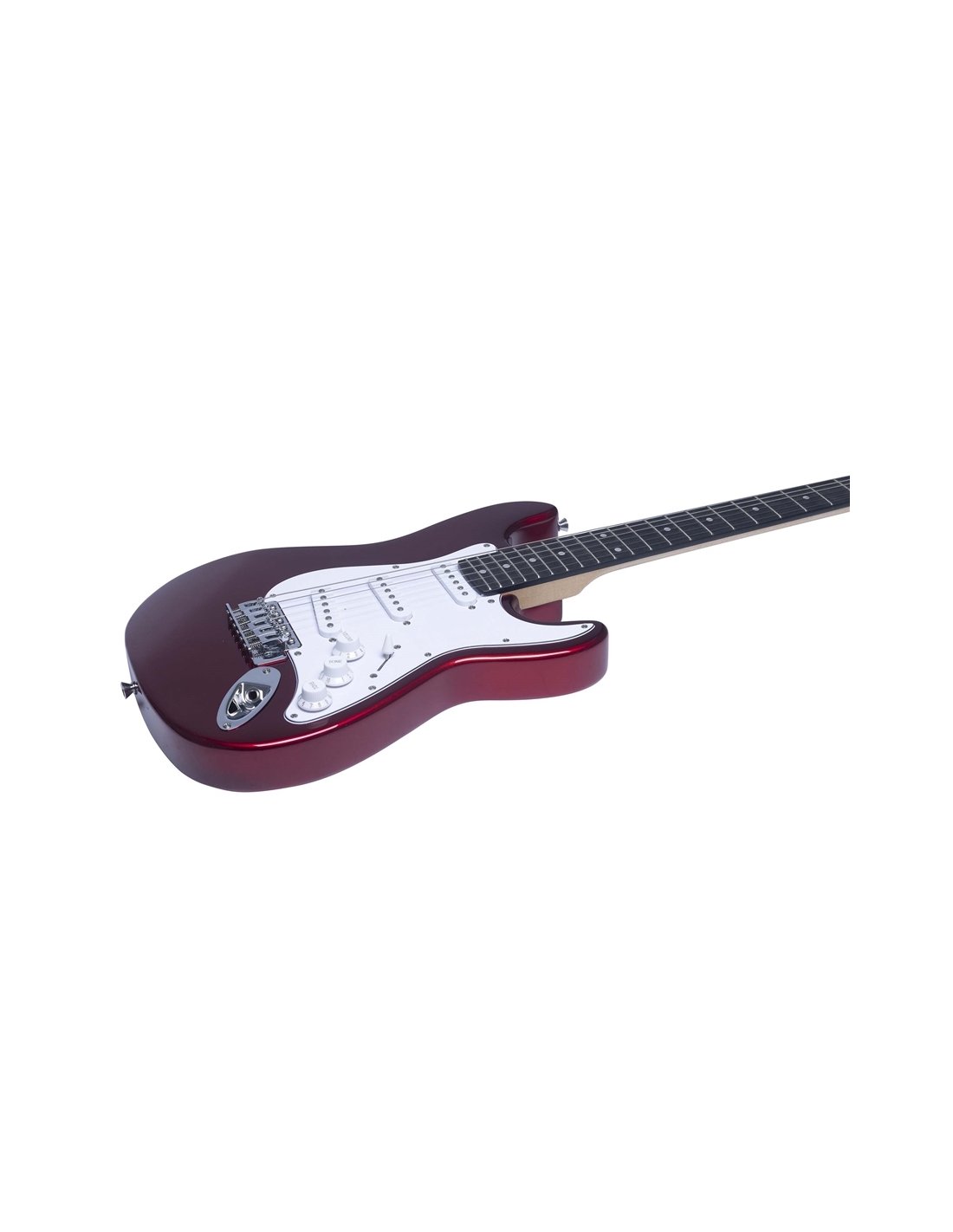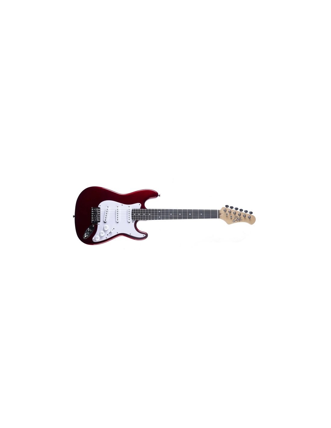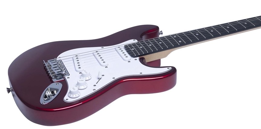 EKO ST-100 3/4 CHROME RED è una chitarra elettrica Strat Style a scala 3/4 della serie Eko "Tribute 100", con corpo in pioppo, manico in acero a finitura Satin a profilo Eko Low C, tastiera in Alloro a raggio 14" con 21 tasti, capotasto da 42mm, meccaniche Eko Die Cast, hardware chrome e ponte Eko Stratoid con Tremolo. L'elettronica consiste in un set di 3 pickup Single Coil Pickup Eko Standard, con controllo del Volume, 2 controlli del Tono e selettore pickup a 3 vie.