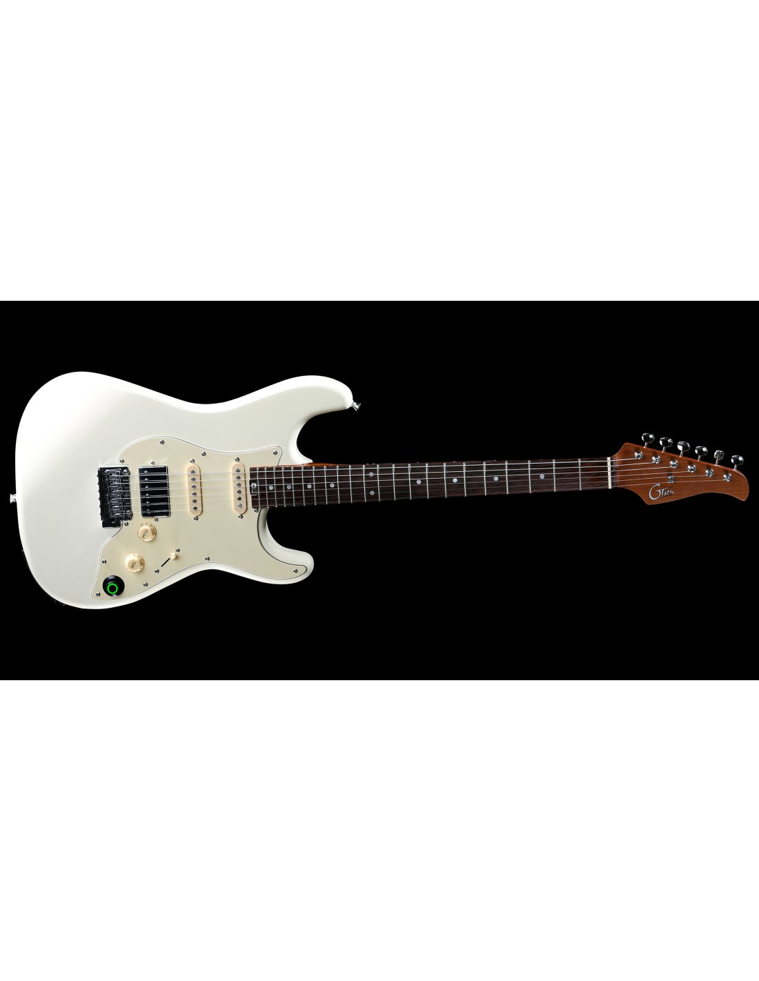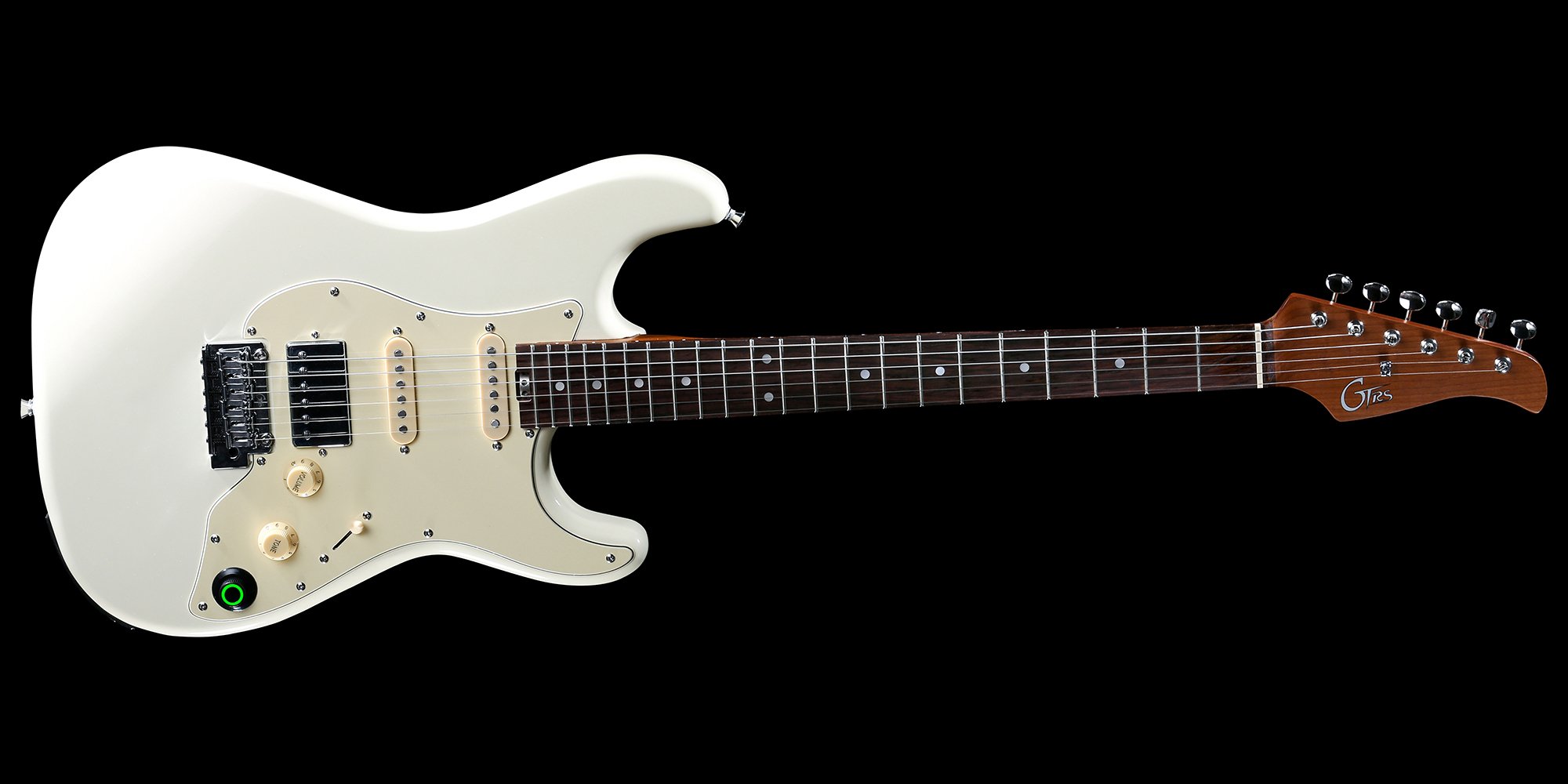 Chitarra elettrica solid-body con processore digitale.Costruzione: Bolt-on. Scala: 25-1/2. Manico: Acero Roasted. Finitura Manico: Naturale Satinata. Meccaniche: Vintage Style Chrome. Capotasto: 1 5/8", Osso. Profilo: Standard C. Tastiera: Palissandro. Radius Tastiera: 12". Tasti: 22 Nickel Silver, Jumbo. Truss Rod: Dual Action Steel. Corpo:Tiglio Americano. Finitura Corpo: Poly. Colore:Vintage White. Hardware: Chrome. Ponte:GTRS 2-Point Tremolo. Pickup: GTRS SC-1N Alnico V, SC-1M Alnico V, HM-1B Alnico V. Processore: GTRS Intelligent Process System. Controlli: Volume, Tone, Super-Knob (Main output/Preset control), 5 Way Switch. Scalatura Corde: 009-042. Accessori Inclusi: GTRS gig bag, Tremolo arm, Chiavi di regolazione, Cavo USB-C Magnetico, Manuale. Supporta il footswitch di controllo GWF4 (venduto separatamente). 9 Simulazioni Chitarra - 126 Effetti - 40 Batterie - 10 Metronomi - Looper da 80 secondi. Bluetooth: 5.0 - APP: iOS /Android. Supporta lo sharing via cloud. Alimentazione: Batteria al litio ricaricabile GLB-P1 Li-ion Battery 4000mA. Durata: Fino a 10 ore di uso continuo. USB-C: Supporta registrazione e ricarica batteria