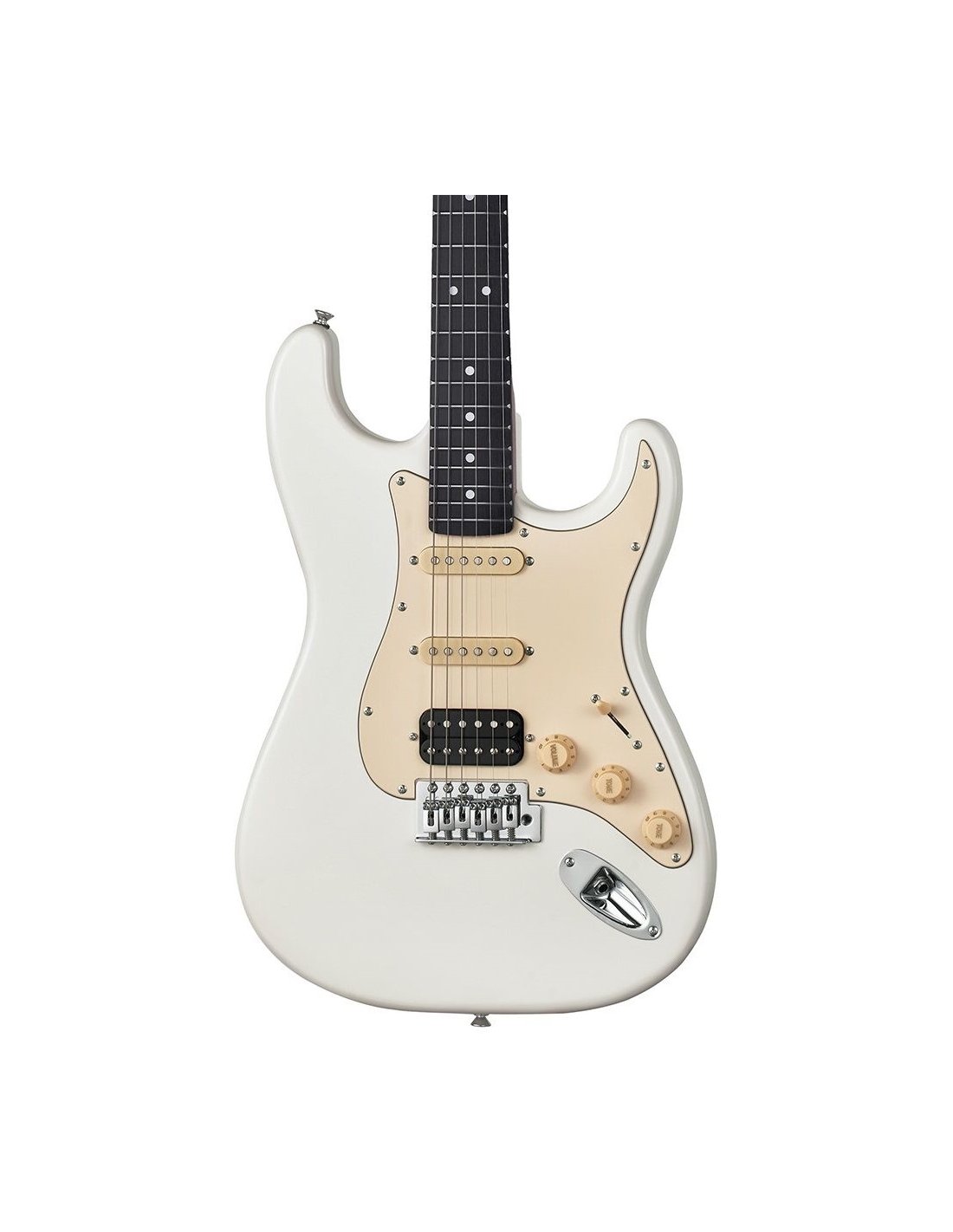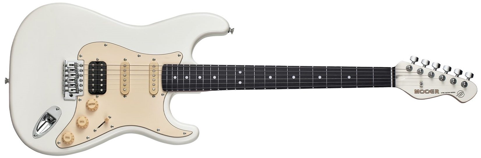 Chitarra Elettrica Solid-Body<br /><br />• Neck: Roasted Maple<br />• Construction: Bolt-on<br />• Neck Finish: Satin<br />• Neck Shape: Standard C<br />• Tuners: MTN-1 chrome<br />• Nut: Bone<br />• Fingerboard: Tech Ebony<br />• Radius: 12" (305 mm)<br />• Frets: 22 Nickel Silver frets<br />• Scale: 25.5"(648mm)<br />• Truss Rod: Dual Action Steel<br />• Body: Poplar<br />• Body: Finish Gloss<br />• Color: Vintage White<br />• Strap Pin: Chrome <br />• Bridge: MVT-1 6-hole vintage tremolo <br />• Pickup Neck: MSC-1N Single Coil<br />• Pickup Middle: MSC-1MSingle Coil<br />• Pickup Bridge: MHB-1B Humbucker<br />• Controls: Vol x1, Tone x2, 5-Way Switch<br />• Strings: 009-46<br />• Mooer Gig-Bag included