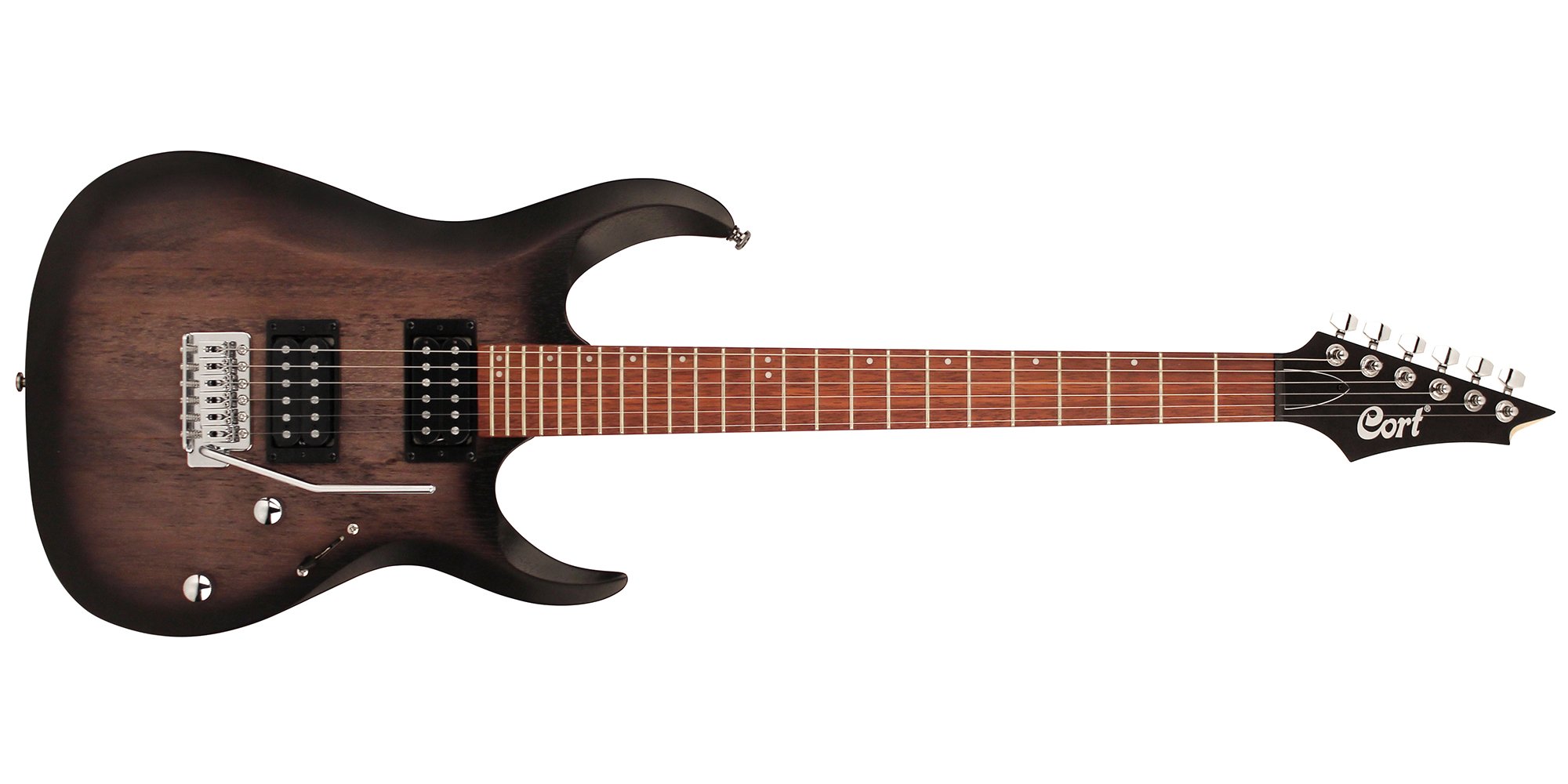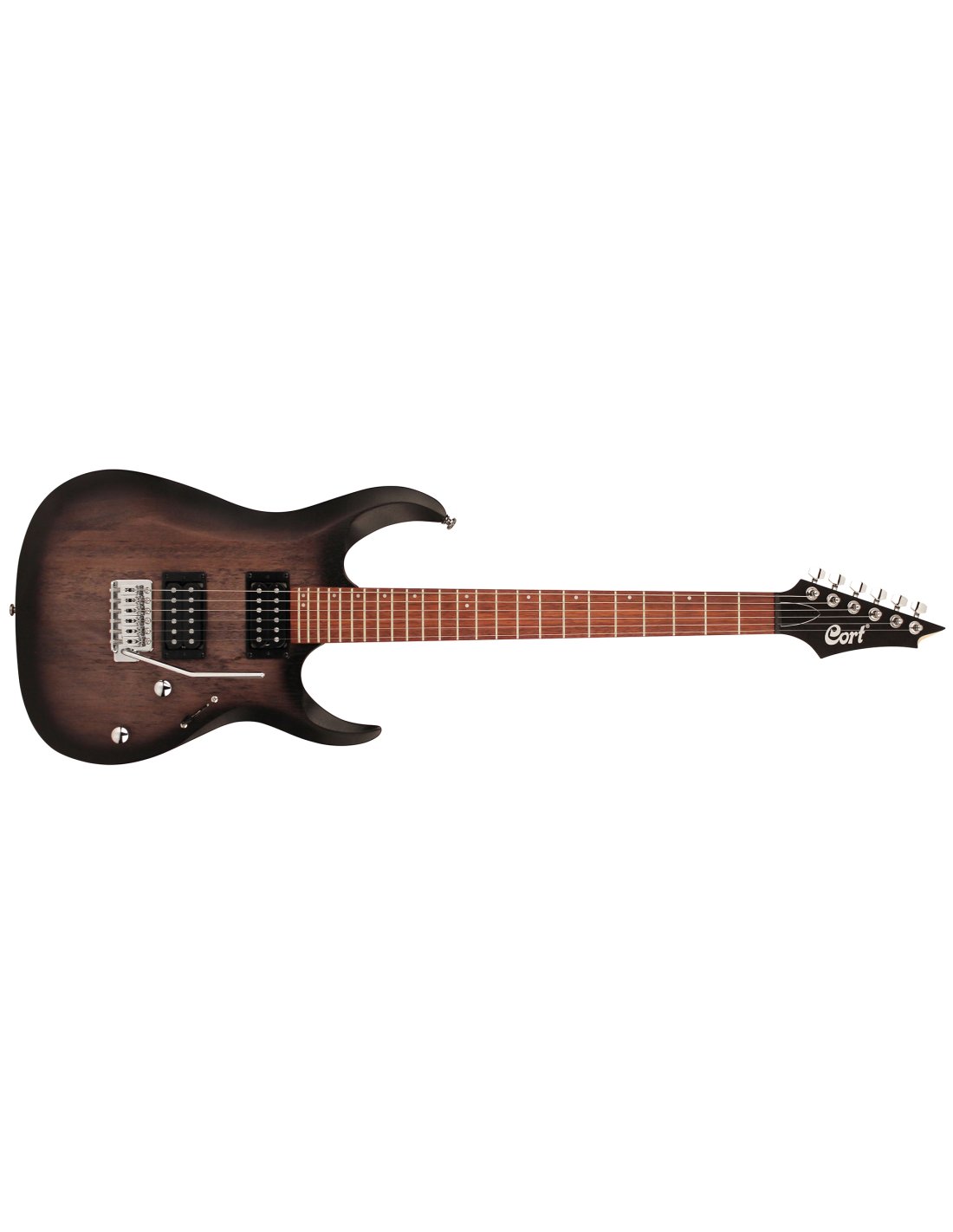 Chitarra Elettrica Cort X100 OPBB colore OPEN PORE BLACK BURST. La Cort X100 OPBB è una chitarra elettrica a 6 corde. Le caratteristiche tecniche includono corpo in meranti, manico in acero, tastiera in jatoba, 24 tasti jumbo, ponte 6-point tremolo, pickup Powersound humbuckers.