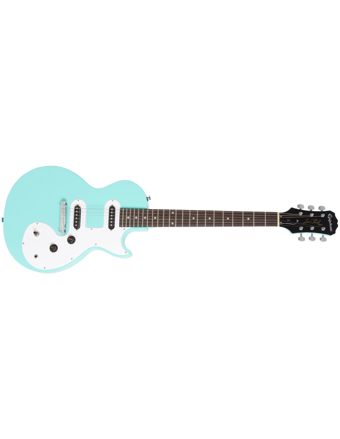 Chitarra Elettrica Epiphone Les Paul SL colore TURQUOISE. L'Epiphone Les Paul SL è una chitarra elettrica a 6 corde. Le caratteristiche tecniche includono corpo in pioppo, manico in mogano con profilo 1960s Slim Taper "D", tastiera in palissandro, radius 12”, 22 tasti medium jumbo, pickup Epiphone 650SCR Single-Coil (neck) ed Epiphone 700SCT Single-Coil (bridge).