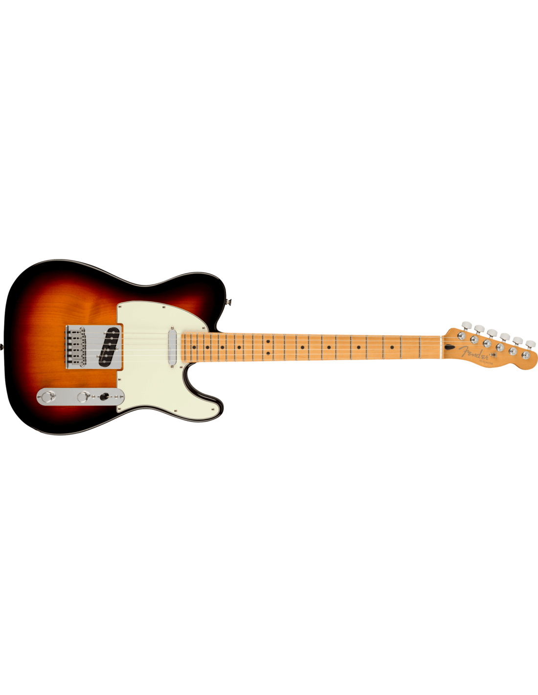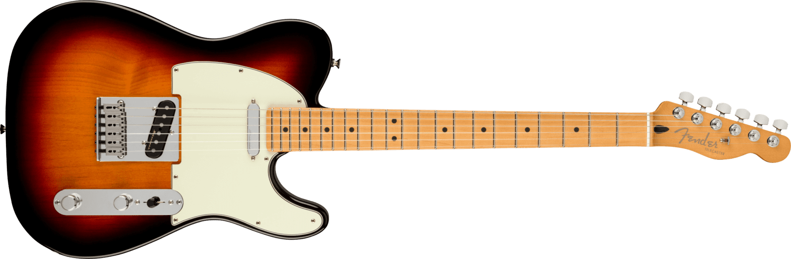 Chitarra Elettrica Fender Player Plus Tele MN, colore 3-Tone Sunburst. La Fender Player Plus è una chitarra elettrica a 6 corde. Con la potenza di un set di pickup Player Plus Noiseless™ la Player Plus Tele® offre il classico "twang" Tele® caldo e dolce, senza rumori di fondo. Uno switch push-pull sul controllo di tono attiva entrambi i pickup per il funzionamento in serie, incrementando l'uscita e il corpo del suono. Lo scorrevole manico in acero satinato Player Plus Tele® con profilo Modern “C” si adatta alla tua mano, con i suoi bordi smussati per il massimo comfort. Il raggio della tastiera da 12” e i 22 tasti medium jumbo garantiscono assoli e bend sempre perfettamente fluidi. Un moderno ponte a 6 sellette in acciaio aggiunge un tocco di brillantezza, offrendo al contempo un'intonazione sempre precisa, mentre le meccaniche autobloccanti garantiscono un'accordatura dalla stabilità assoluta. Custodia morbida Deluxe in dotazione