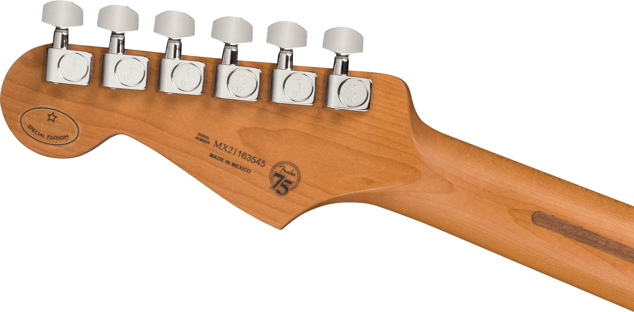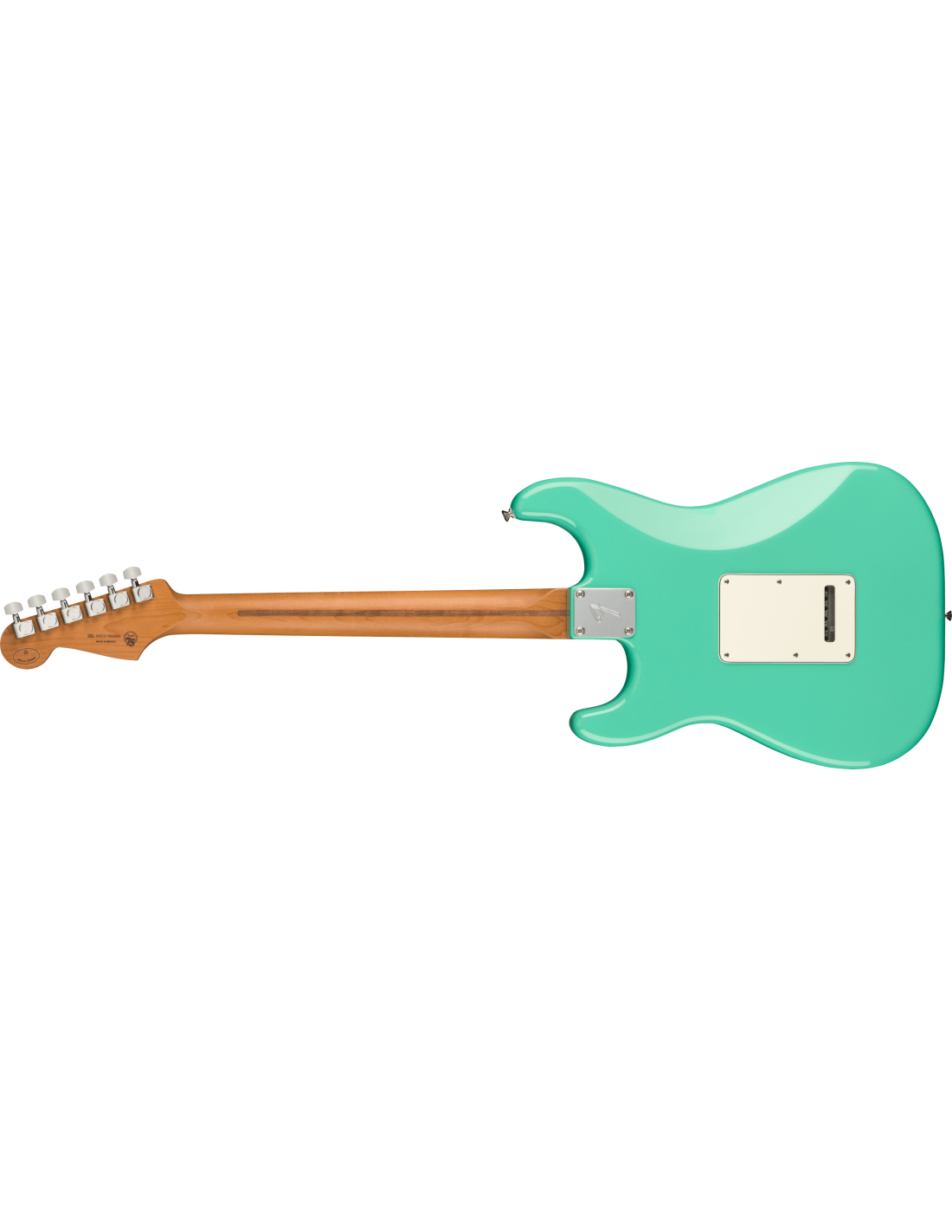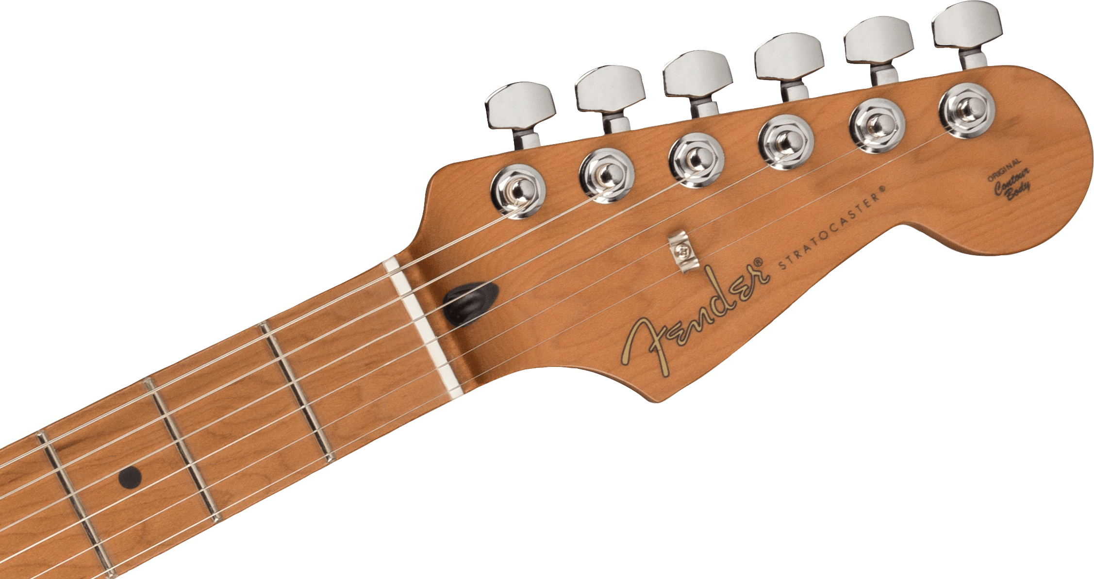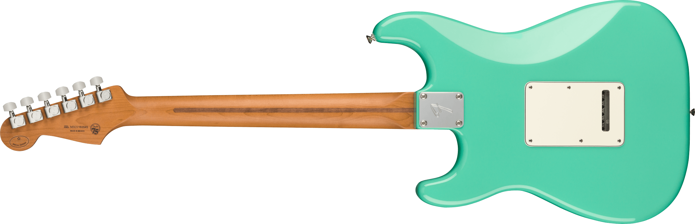 FENDER DE PLAYER STRAT ROASTED MN SFMG è una chitarra elettrica solid body, modello Limited Edition Player Stratocaster, con corpo in Alder (ontano) e finitura Gloss Polyester, manico in acero Roasted a profilo Modern "C", tastiera in acero Roasted a raggio 9,5" con 22 tasti Medium Jumbo e intarsi Black Dots, Truss Rod Standard, capotasto in osso sintetico, hardware nichelato, meccaniche Fender Standard Cast/Sealed con abbassacorde Dual Wing e ponte Fender 2-points Synchronized Tremolo con sellette in acciaio piegato. L'elettronica a configurazione SSS, consiste in 3 pickup Single Coil Player Series Alnico 5 Strat, con controllo Master Volume, 2 controlli del tono e selettore pickup a 5 vie.