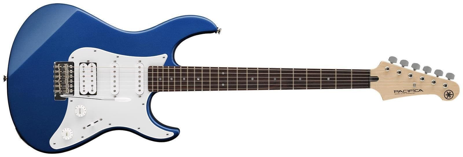 Chitarra elettrica Yamaha Pacifica PAC012, colore dark blue, è una chitarra elettrica a 6 corde, presenta un corpo in agata leggero con manico in acero e tastiera in palissandro, 22 tasti, è dotato di un humbucker ceramico Yamaha custom al ponte, due pickup single-coil nelle posizioni centrale ed al manico.