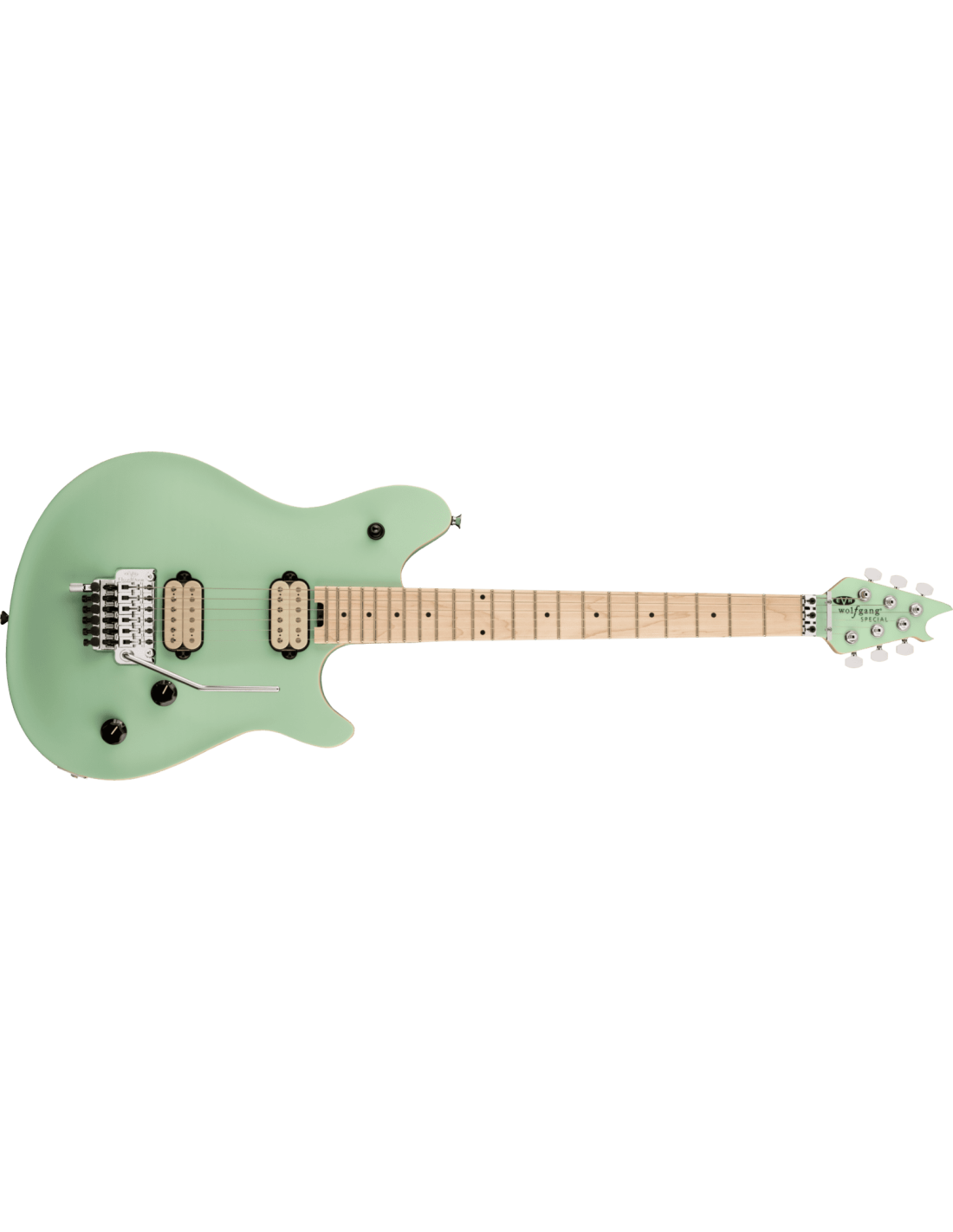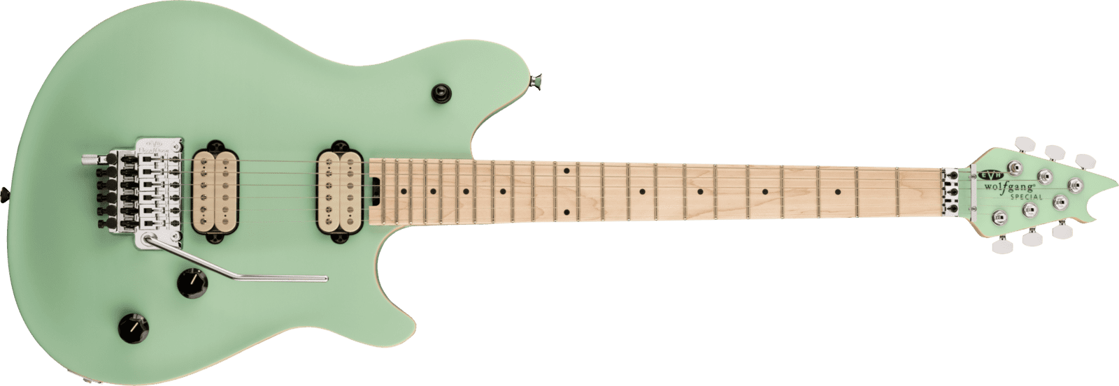 Chitarra Elettrica EVH Wolfgang WG SPC MPL FB colore Surf Green. La Wolfgang WG SPC MPL FB è una chitarra elettrica a 6 corde. Le caratteristiche tecniche comprendono: manico in Acero tagliato di quarto, con profilo Wolfgang. Tastiera in Acero con raggio Compound 12"-16" e 22 tasti Jumbo. Corpo in Tiglio con top bombato. Due pickup EVH Wolfgang Humbucking, e controlli di Volume con Treble Bleed Circuit e Tono. Selettore a tre posizioni. Ponte EVH Floyd Rose con D-Tuna. Hardware cromato.