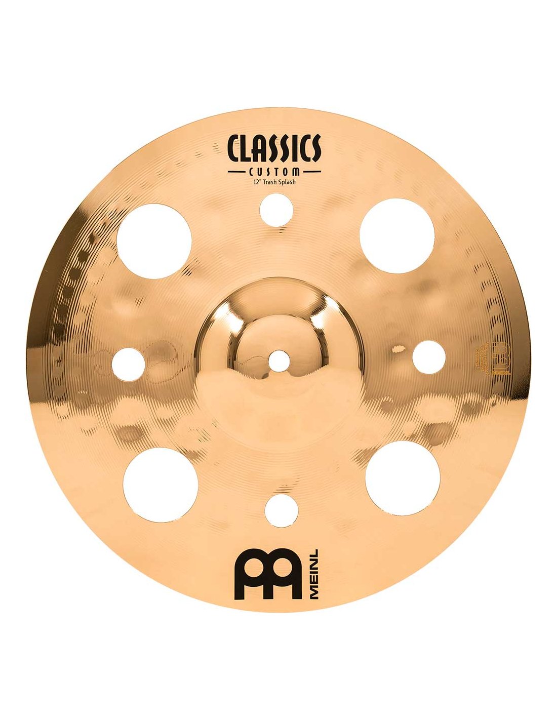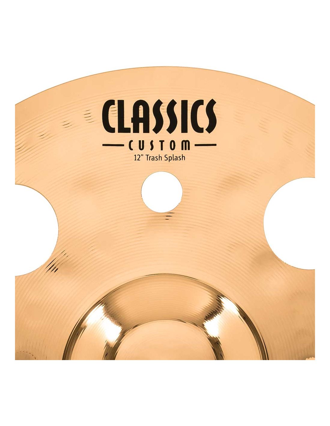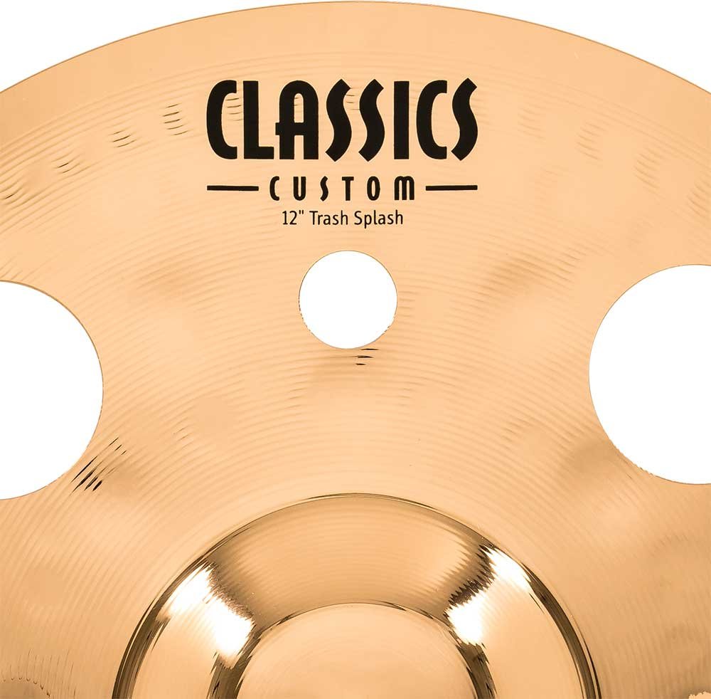 'Splash 12'' Trash, Serie Classics Custom. I piatti della Serie Classics Custom sono prodotti meccanicamente in Germania con una lega B10. Il processo comporta varie tecniche, sia di pressatura che di martellamento computerizzato. Oltre a questo ricevono una laccatura lucida che dà loro una spettacolare finitura lucida.
