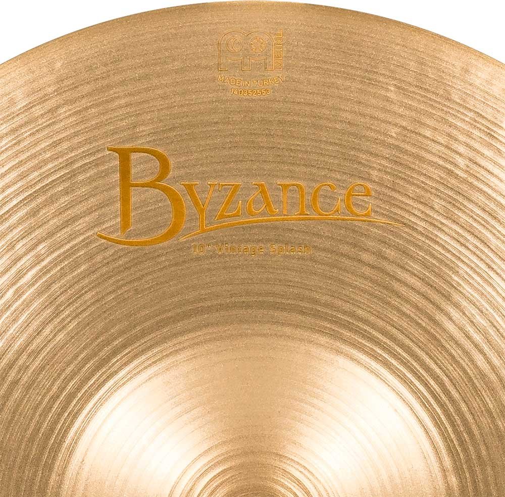 'Splash 10'', Serie Vintage Byzance. I piatti della serie Byzance Vintage sono realizzati artigianalmente nella nostra fabbrica in Turchia dalle mani di specialisti e rispettando la tradizione in tutto il processo. Tutte le piastre sono realizzate con dischi in lega di bronzo B20. Diverse tecniche sono coinvolte nel processo, sia la martellatura che la tornitura. La finitura Vintage dà ad ogni piatto un suono medio che ricorda piatti molto più antichi. Davvero gradevole nel mix.