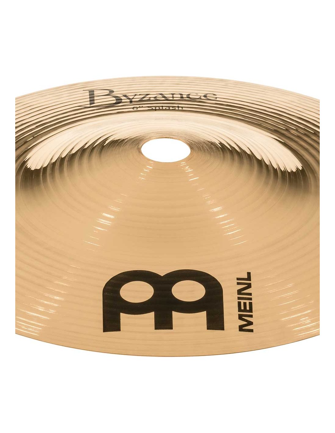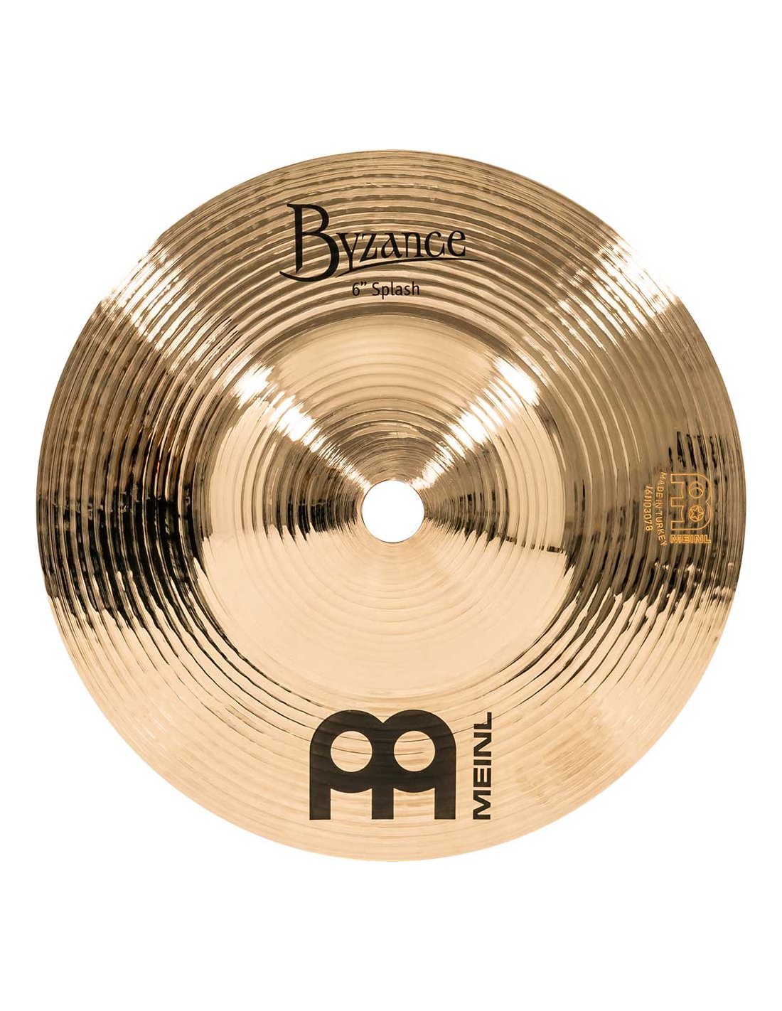 'Splash 6'', Serie Byzance Brillant. I piatti della serie Byzance Brillante sono prodotti artigianalmente nella nostra fabbrica in Turchia da specialisti e rispettando la tradizione in tutto il processo. Tutti i piatti sono realizzati con dischi in lega di bronzo B20. Diverse tecniche sono coinvolte nel processo, sia la martellatura che la tornitura.Oltre a questo ricevono una laccatura lucida che dà loro una finitura lucida spettacolare.