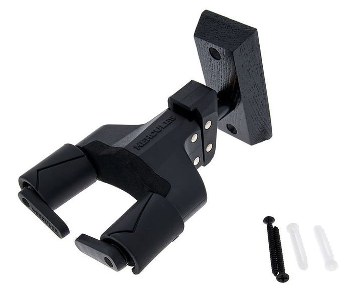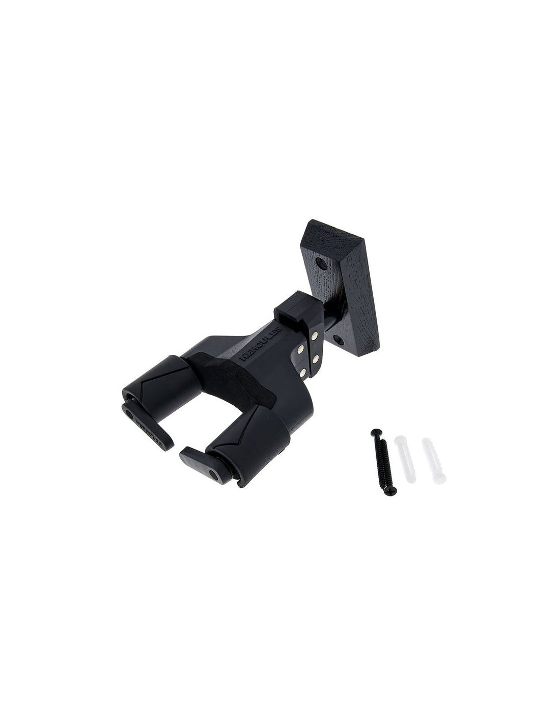 Hercules GSP 38WBK Plus è un supporto a muro per chitarra costituito una base in legno con finitura nera. Consente regolazioni multi-angolo bloccando in sicurezza lo strumento. Può contenere una gamma di dimensioni di manici ampia e sostenere chitarre, bassi o banjo e mandolini grazie agli attacchi speciali.