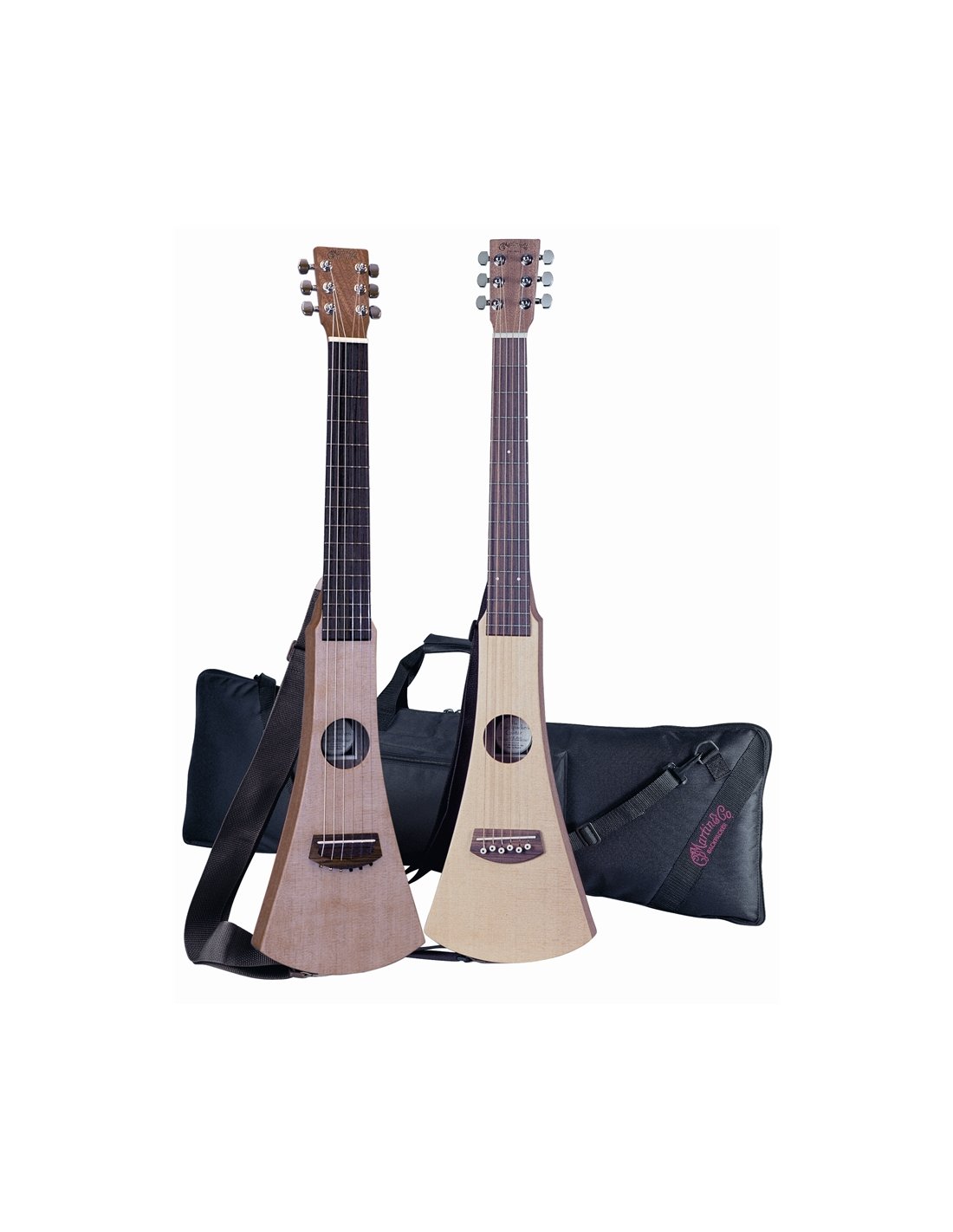 Backpacker corde in metallo, tavola in abete massello, fasce, fondo e manico in mogano, tastiera 15 tasti in hardwood, meccaniche cromate. Completo di borsa in nyIon, finitura natural.